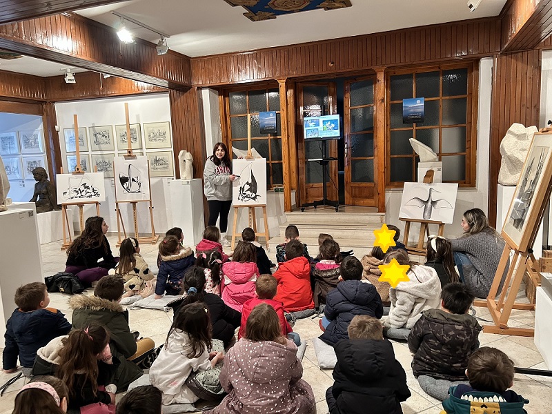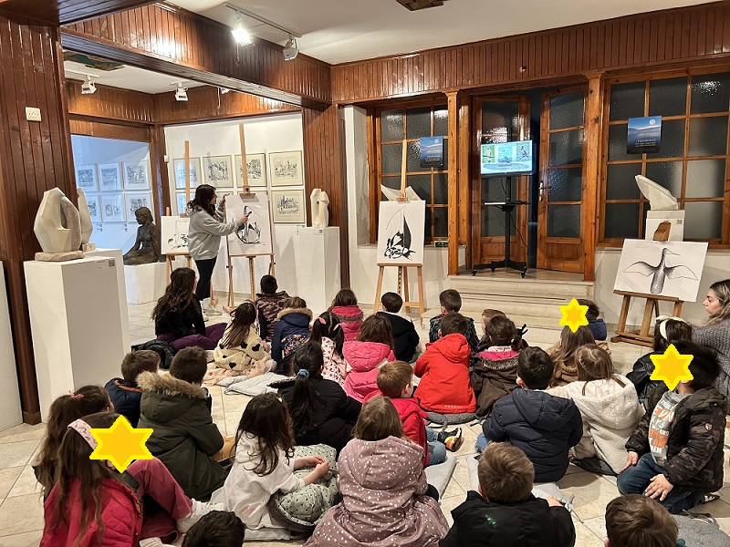 Περιηγηθήκαμε στο χώρο και θαυμάσαμε έργα ζωγραφικής σχετικά με τη λίμνη και το νησί αλλά και μεγαλύτερα έργα φτιαγμένα από ξύλο!