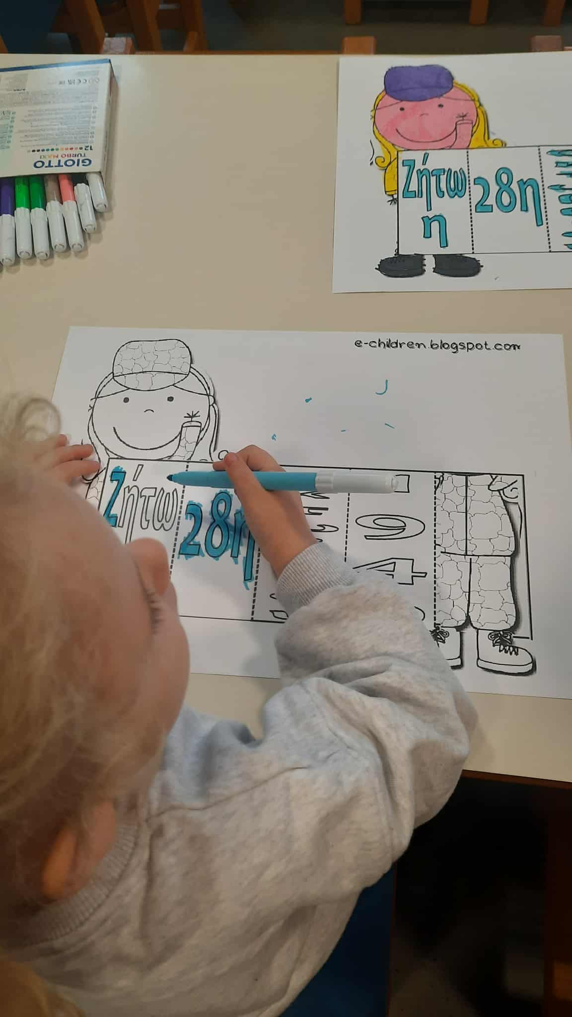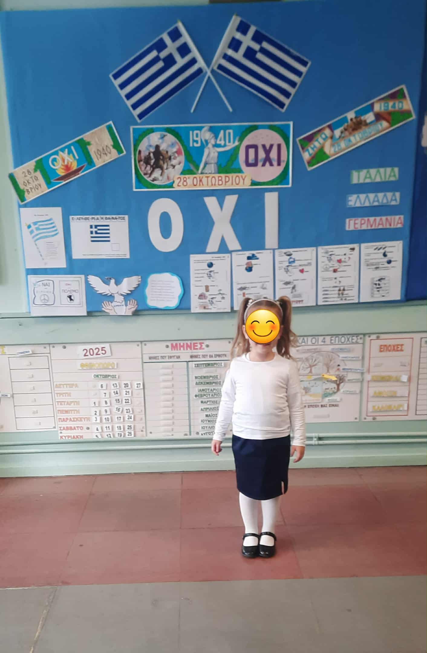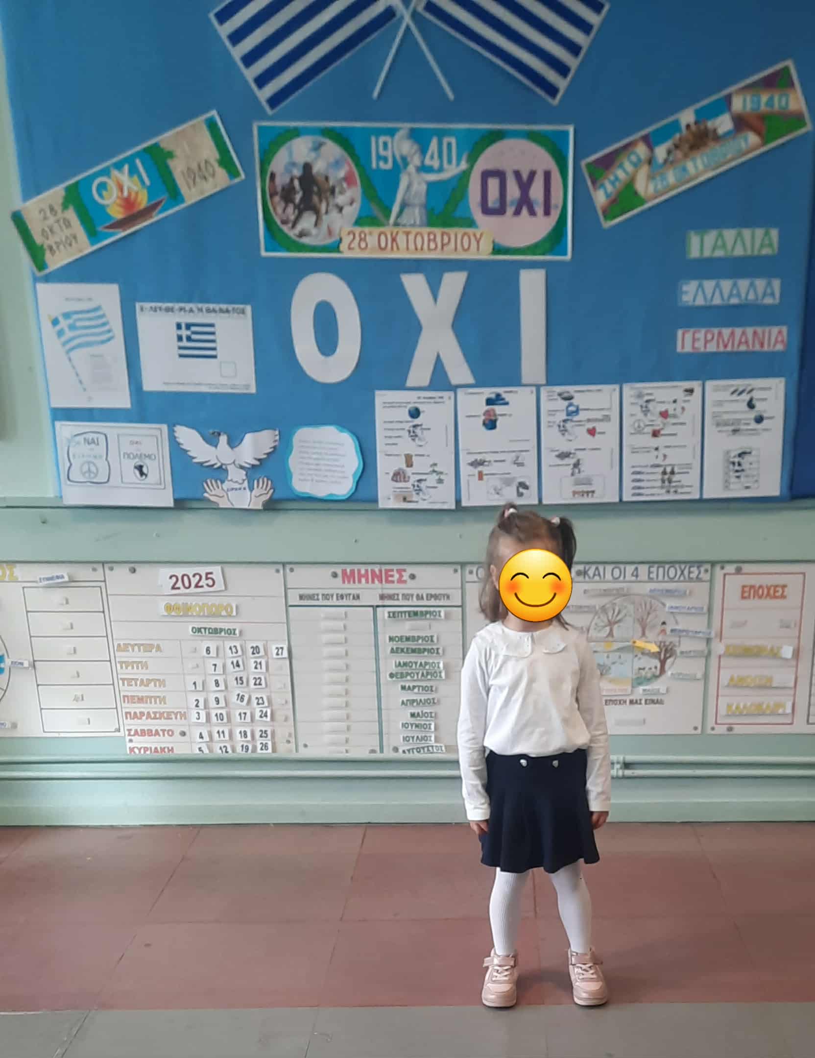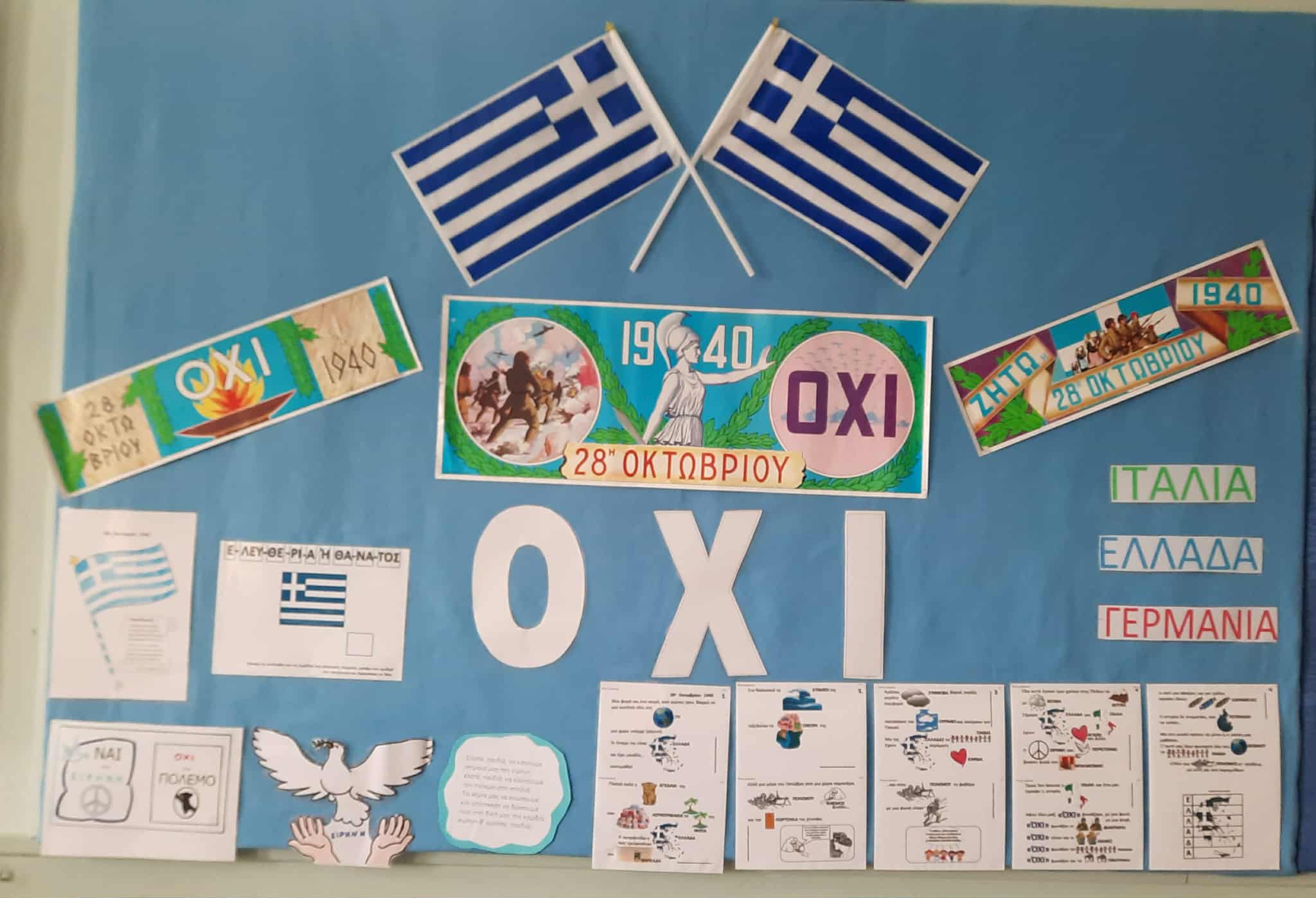 Τιμήσαμε τους ήρωες του 1940 με την απαγγελία ποιημάτων ,τα παιδιά τραγούδησαν επίκαιρα τραγούδια (βάζει ο Ντούτσε την στολή του ,η Γαλανόλευκη Σημαία ,ο Εθνικός Ύμνος ) . Με την παρουσία γονέων τα παιδιά βγήκαν στην αυλή του Νηπιαγωγείου και κρατώντας τις ελληνικές σημαιούλες τους, έκαναν παρέλαση .Οι γονείς τα καμάρωσαν και υπήρξε μεγάλη χαρά και συγκίνηση . Χρόνια πολλά σε όλη την Ελλάδα ,Ζήτω η 28η Οκτωβρίου 1940.
