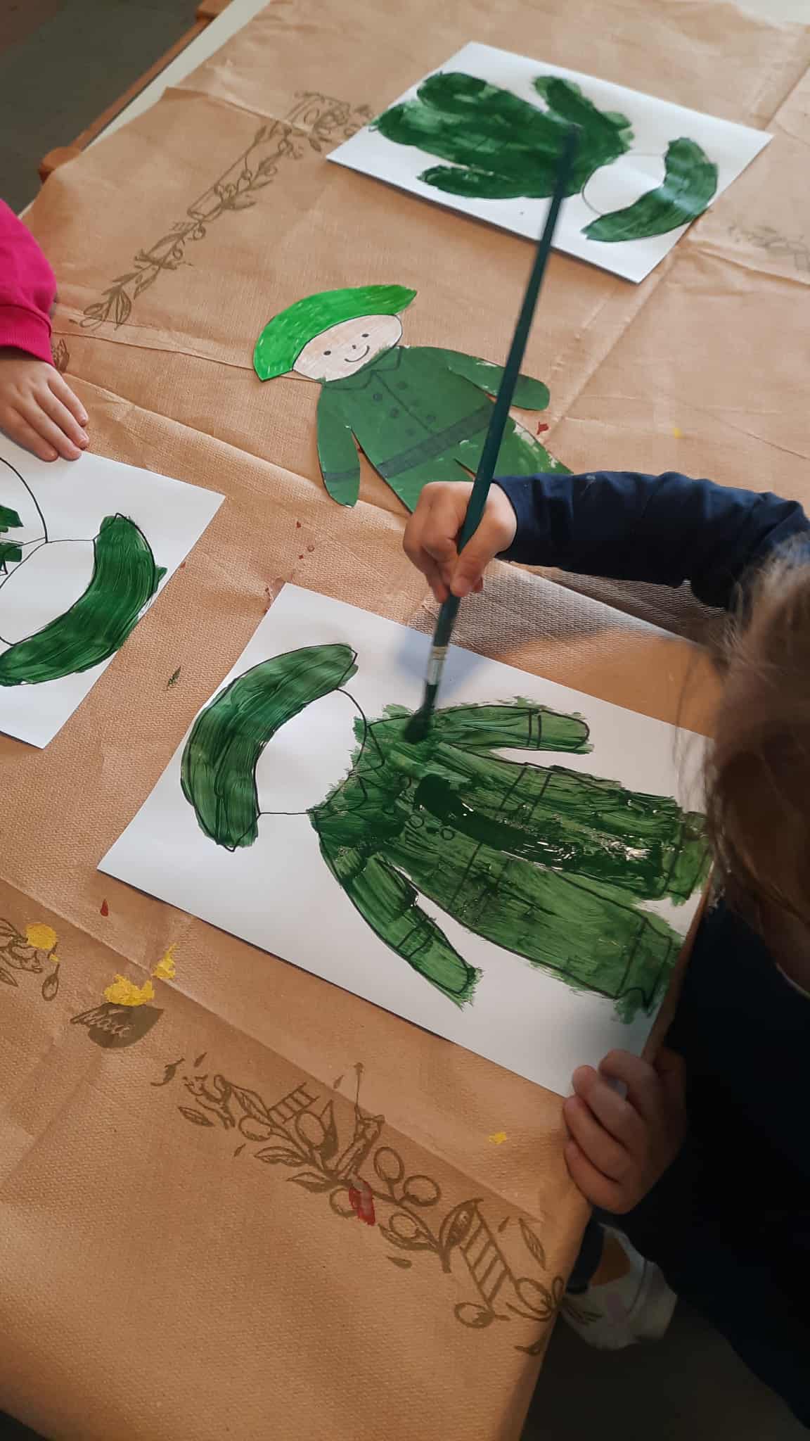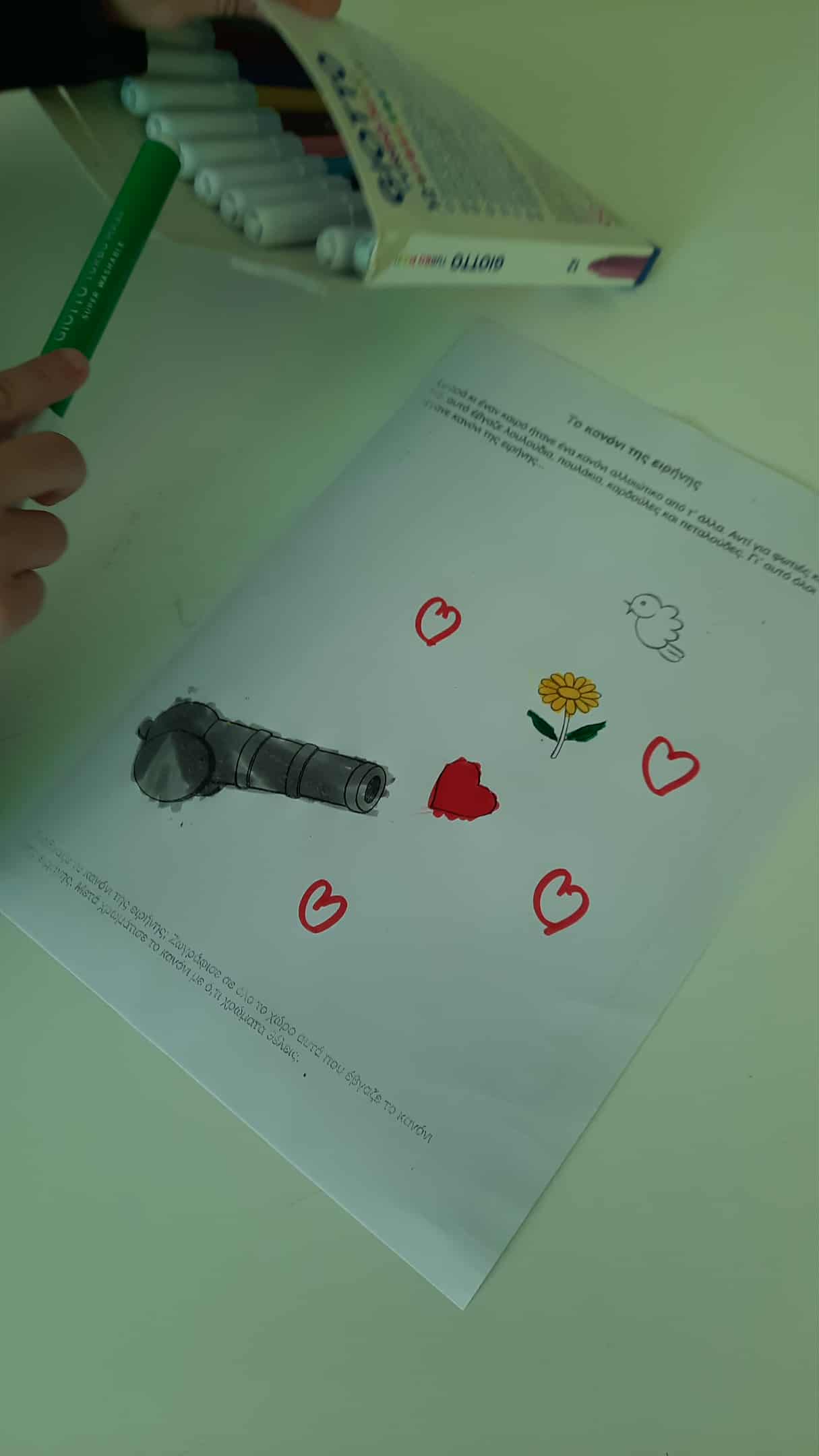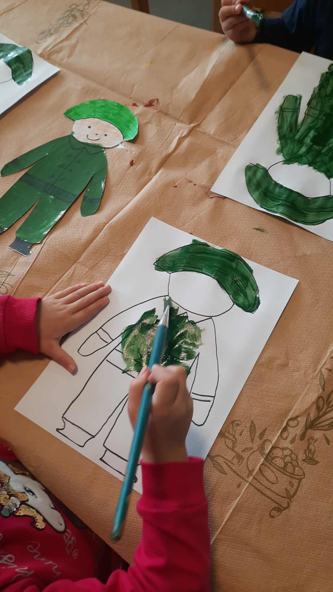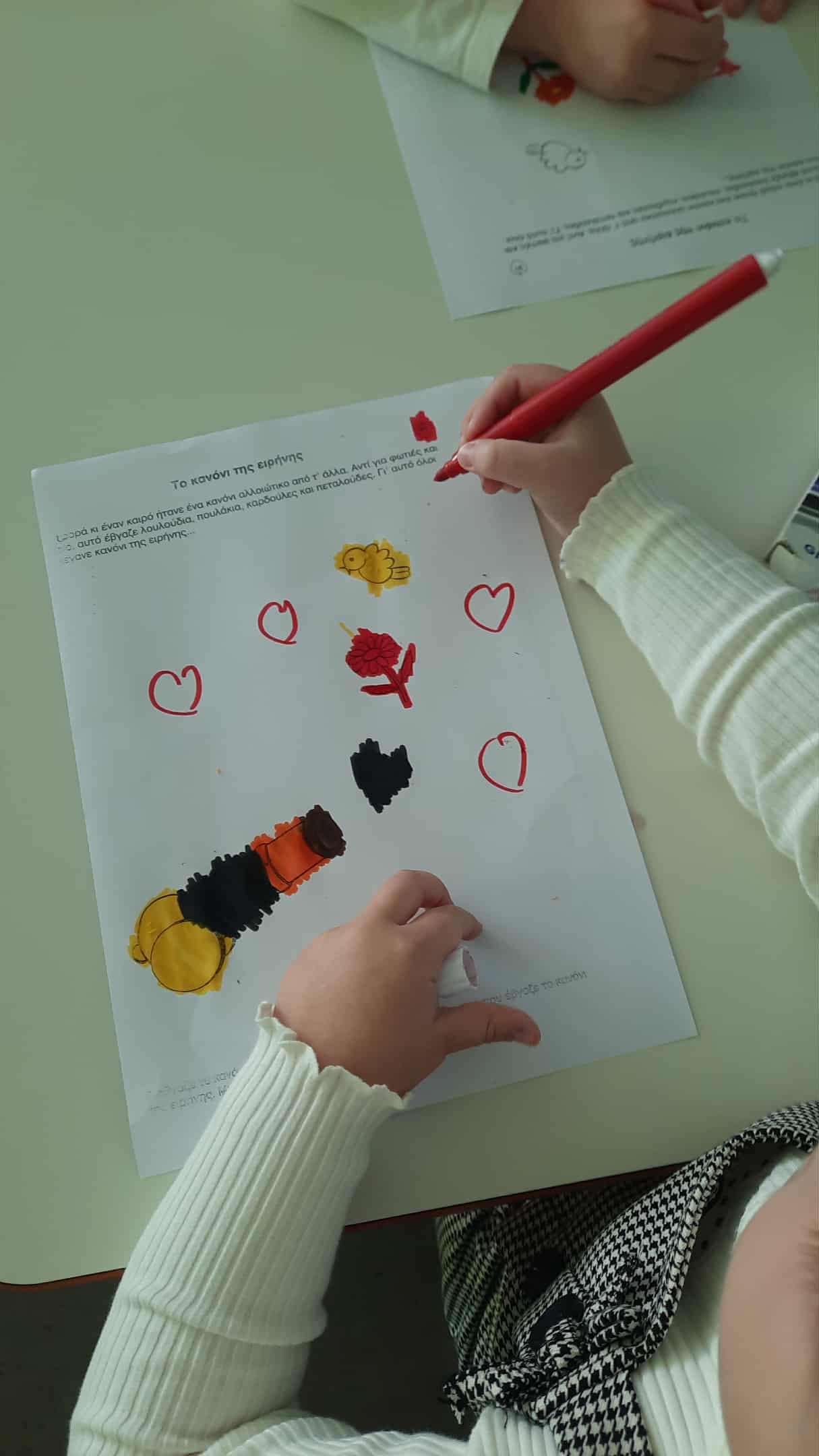 Μιλήσαμε για τα γεγονότα της 28ης Οκτωβρίου 1940 ,για την ελληνική σημαία μας και τις σημαίες από όλο τον κόσμο .Τα παιδιά ζωγράφισαν ,έκοψαν ,κόλλησαν και έφτιαξαν χειροτεχνίες -κατασκευές για την Εθνική μας γιορτή .Έγραψαν τη λέξη ΟΧΙ και μιλήσαμε για το γράμμα Σ σ . Μιλήσαμε για τις διαφορές που έχει ο πόλεμος από την Ειρήνη και φτιάξαμε το κανόνι της ειρήνης που βγάζει καρδούλες ,λουλούδια και πουλάκια. Διαβάσαμε βιβλία -ιστορίες ,είδαν σχετικά βίντεο ,έμαθαν τραγουδάκια και ποιήματα για την 28η Οκτωβρίου .Έκαναν παρέλαση και έμαθαν τον Εθνικό Ύμνο. Ήρθαν στο χώρο μας εκπρόσωποι από τον Ελληνικό Ερυθρό Σταυρό και μίλησαν στα παιδιά για την προσφορά των εθελοντριών -νοσοκόμων στον πόλεμο του 1940 .