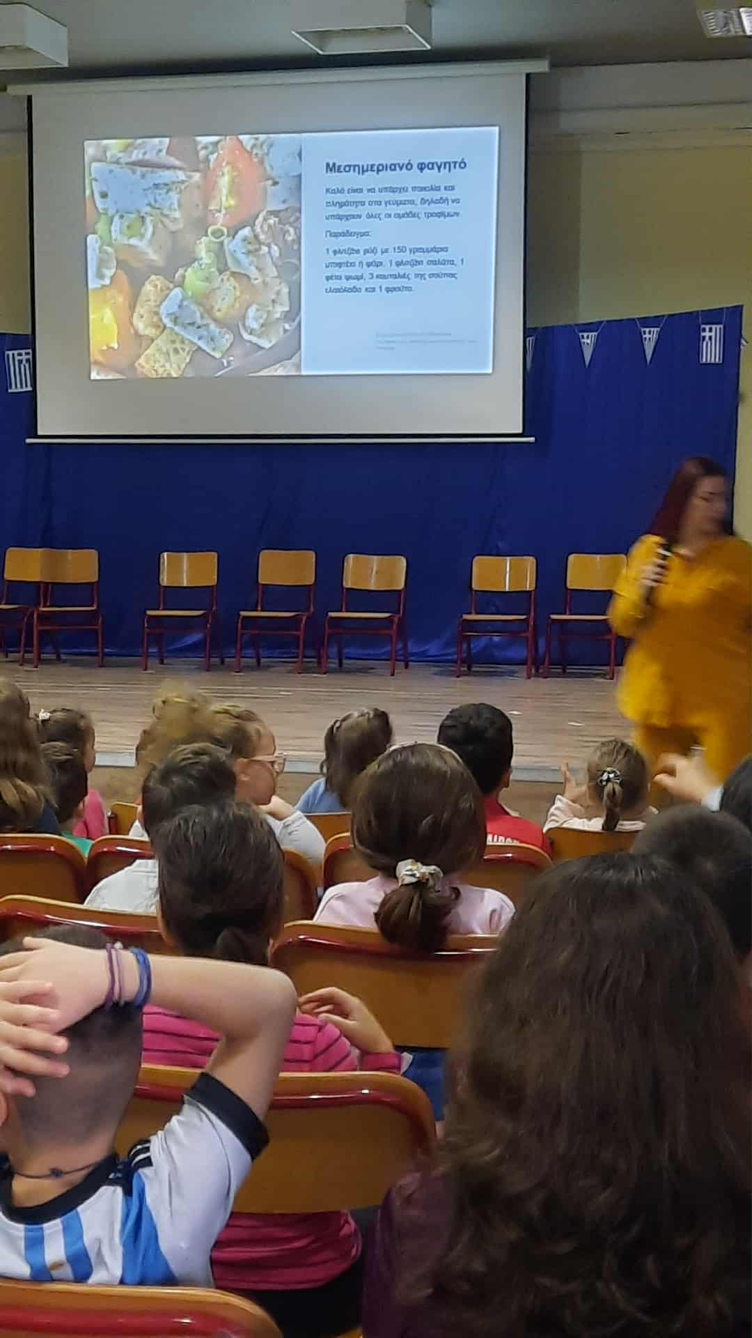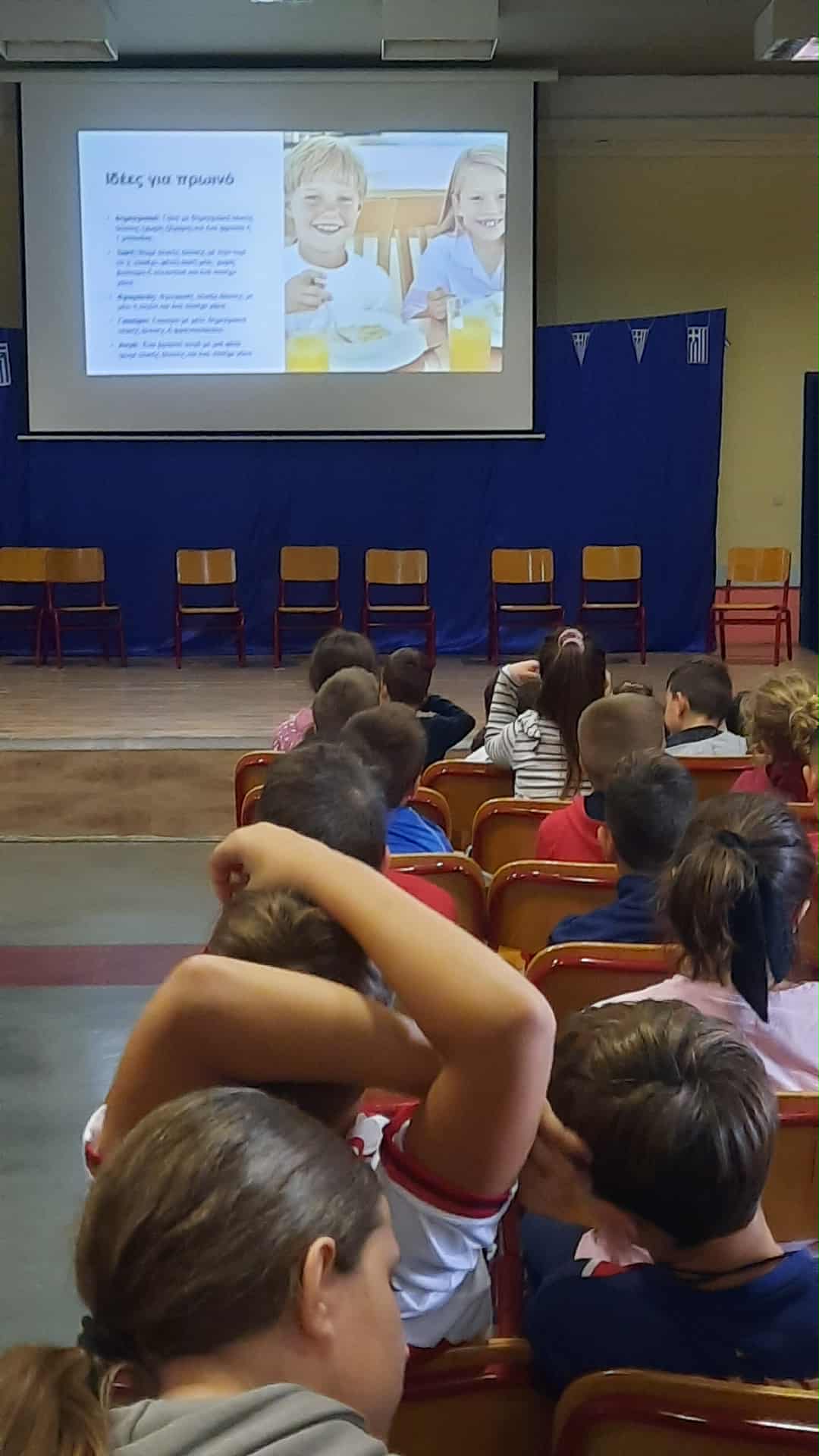Την Παρασκευή 31 Οκτωβρίου 2025 ,στα πλαίσια των κοινών δραστηριοτήτων όλων των συνεργαζόμενων σχολείων ,πραγματοποιήθηκε στην αίθουσα εκδηλώσεων του 31ου Δημοτικού σχολείου ,όπου και παρευρεθήκαμε με τα παιδιά του Νηπιαγωγείου ,ενημερωτική ομιλία- παρουσίαση για όλους τους μαθητές /τριες από την σχολική νοσηλεύτρια κ.Δήμου Βασιλική . Μίλησε στα παιδιά για την Μεσογειακή Διατροφή ,ώστε να υιοθετήσουν υγιεινές διατροφικές συνήθειες στον τρόπο καθημερινότητάς τους .Στο τέλος της ομιλίας-παρουσίασης ,η σχολική μας νοσηλεύτρια έπαιξε με τα παιδιά ένα κουίζ της υγιεινής και μεσογειακής διατροφής ,ενώ απάντησε σε όλες τις απορίες που είχαν τα παιδιά .Ευχαριστούμε πολύ και συνεχίζουμε την υλοποίηση του προγράμματος μας με βάση τον σχεδιασμό μας .