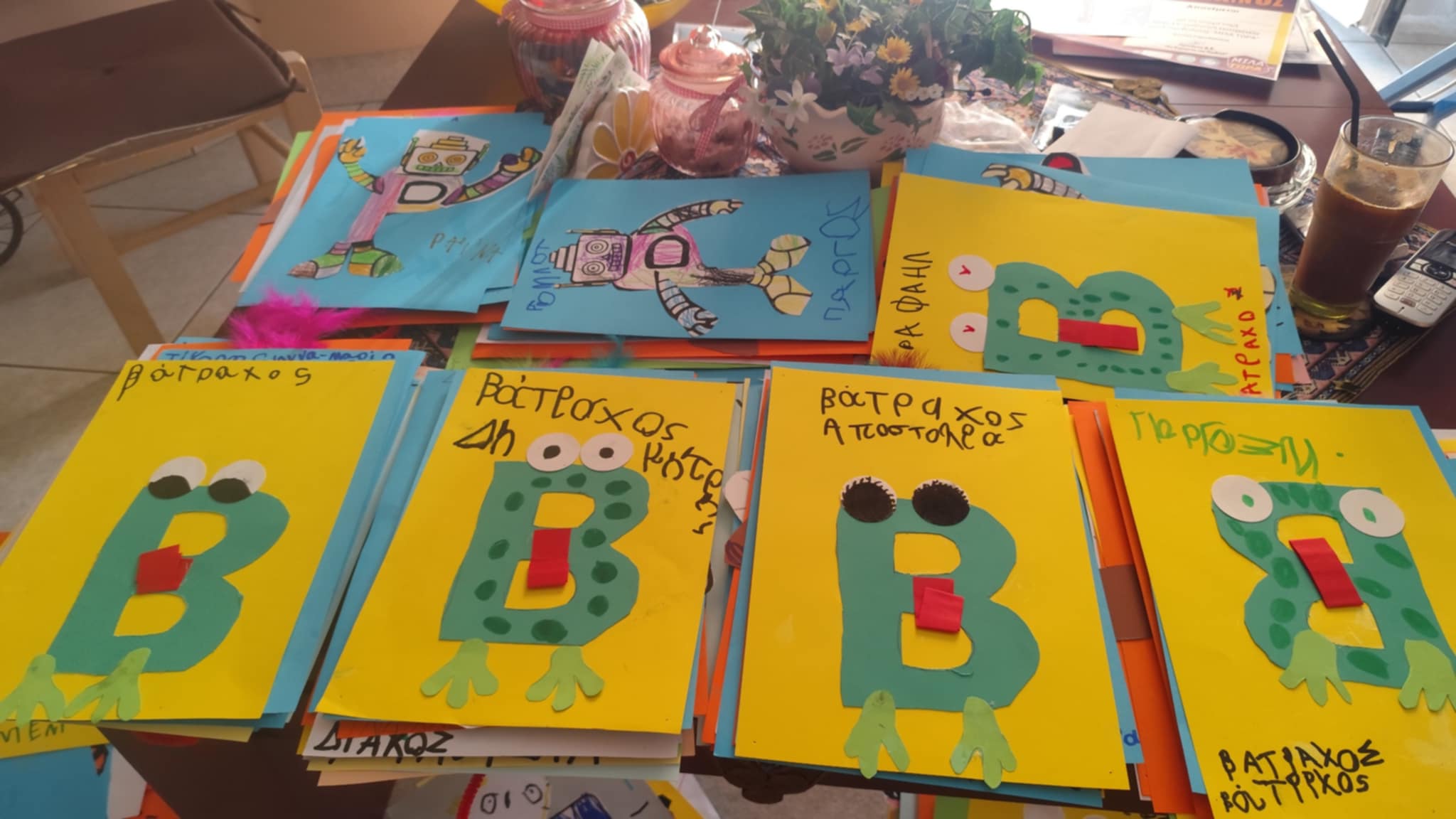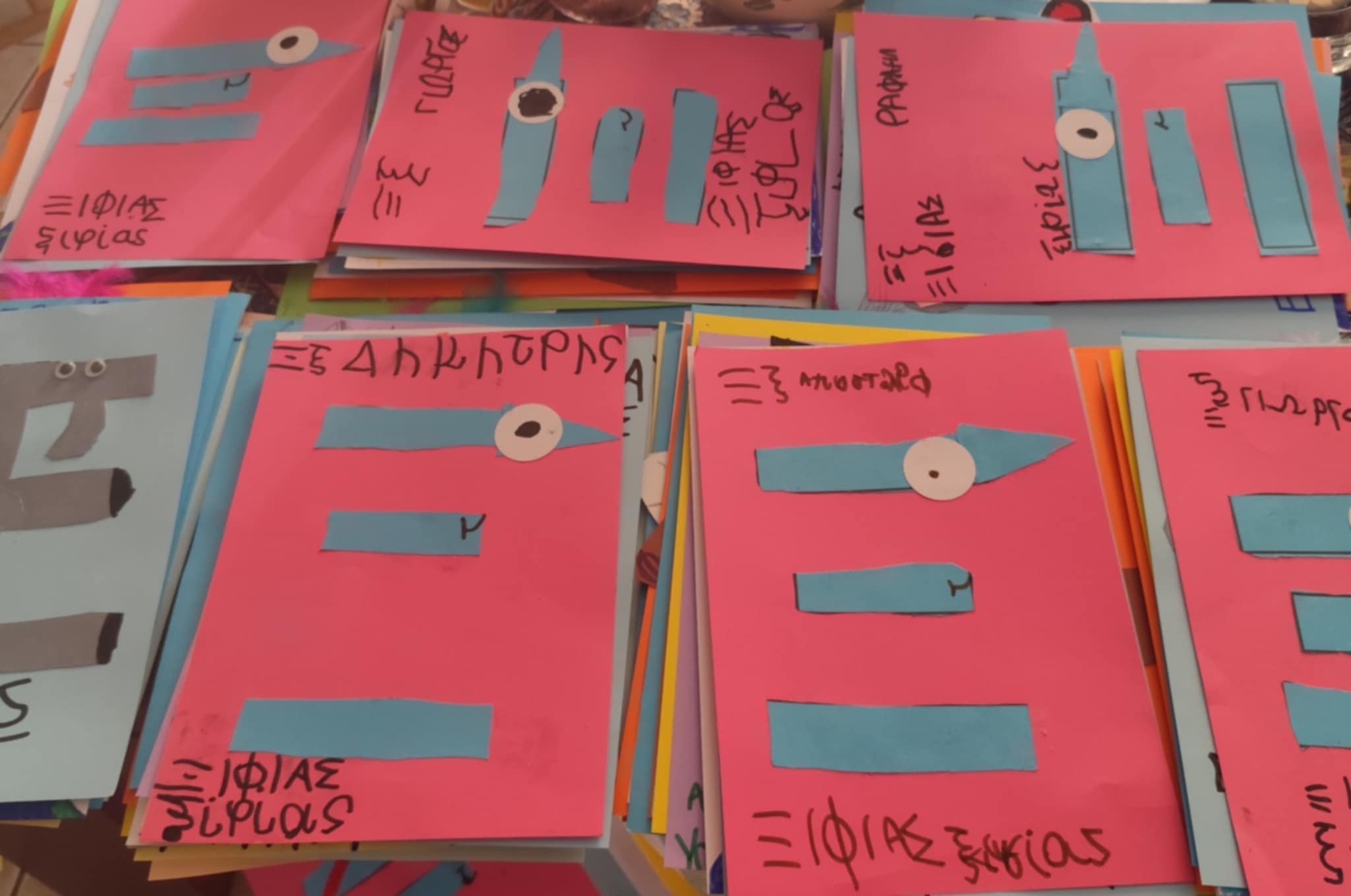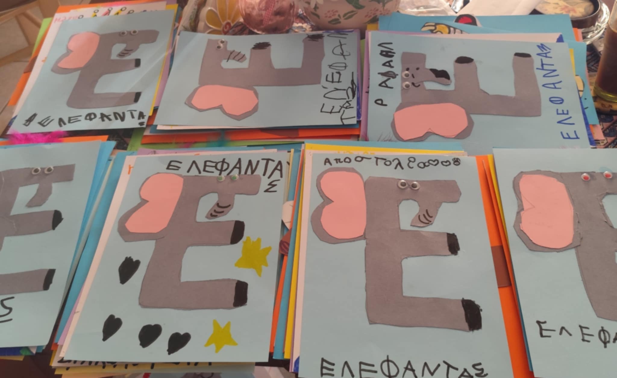 Εκείνο όμως που ευχαριστήθηκαν ιδιαίτερα ήταν η προσωποποίηση των γραμμάτων κάθε φορά που μάθαιναν ένα νέο γράμμα της αλφαβήτου. Νομίζω πως το περιμέναν με ανυπομονησία γιατί όλο αυτό γινόταν μέσα από ένα παιγνιώδη τρόπο που είχε να κάνει με την αναζήτηση λέξεων που άρχιζαν από το αντίστοιχο γράμμα που διαπραγματεύονταν κάθε φορά.