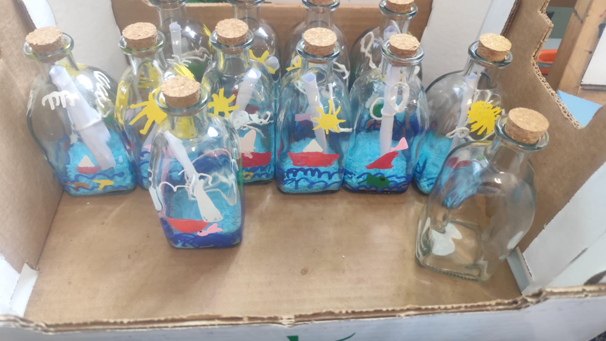 Ζωγράφισαν πάνω σε μπουκάλια ήλιους και καλοκαιρινά σχέδια.