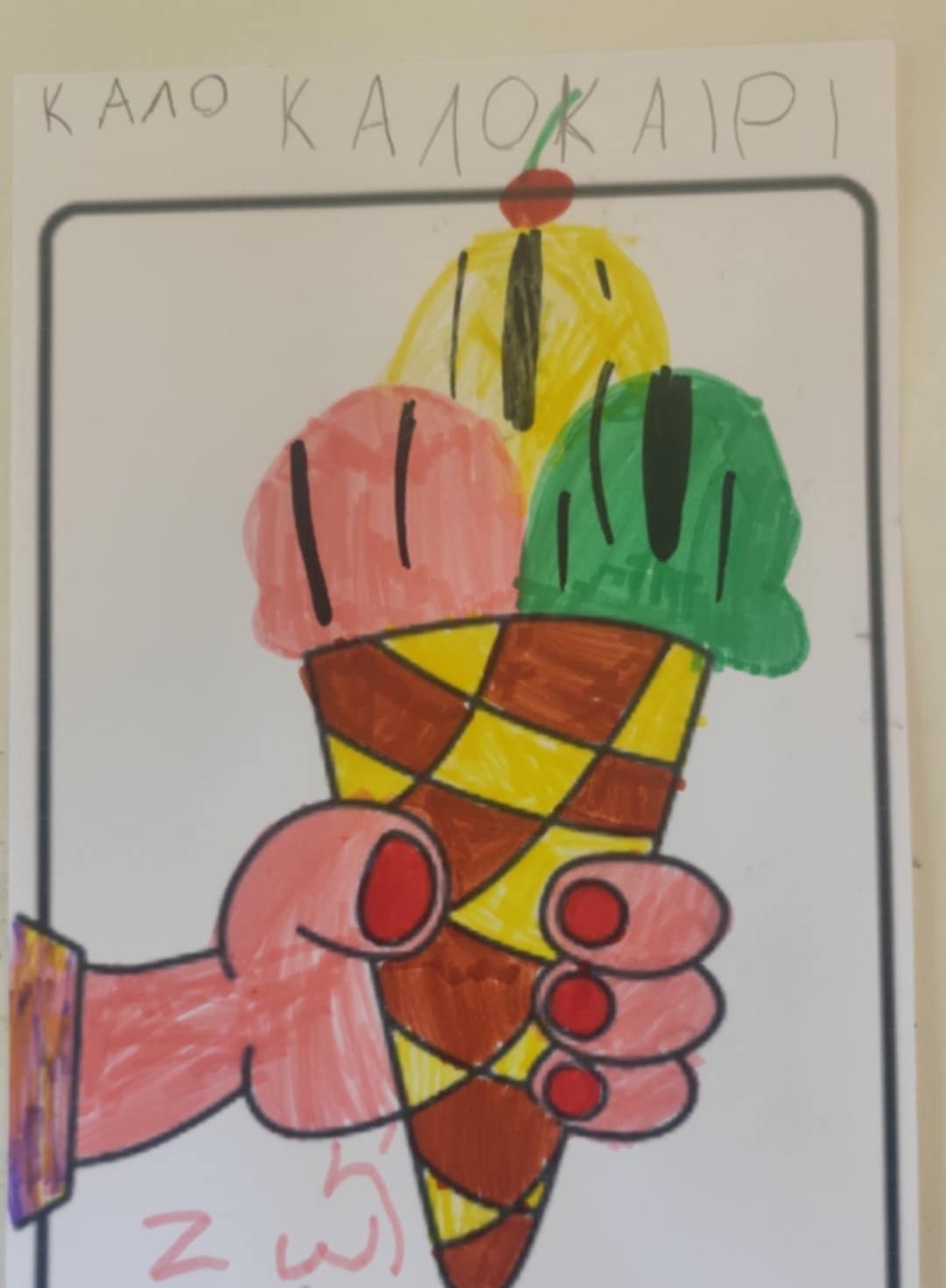 Αφού μιλήσαμε για το Καλοκαίρι και τις διαφορές του από τις άλλες εποχές, μιλήσαμε για τις προφυλάξεις που πρέπει να παίρνουμε κατά την έκθεσή μας στον ήλιο αλλά και για τις αγαπημένες δραστηριότητες και τα φρούτα του Καλοκαιριού. “Νικητές” αναδείχθηκαν η θάλασσα και αγαπημένο φρούτο το καρπούζι. ….. μας επισκέφθηκε και η αγαπημένη μας κούκλα “Ο Πιπίνος ” και αφού έπαιξε με τους φίλους του μια ιστορία, μας ευχήθηκε με “γλυκό ” τρόπο “Καλό Καλοκαίρι”