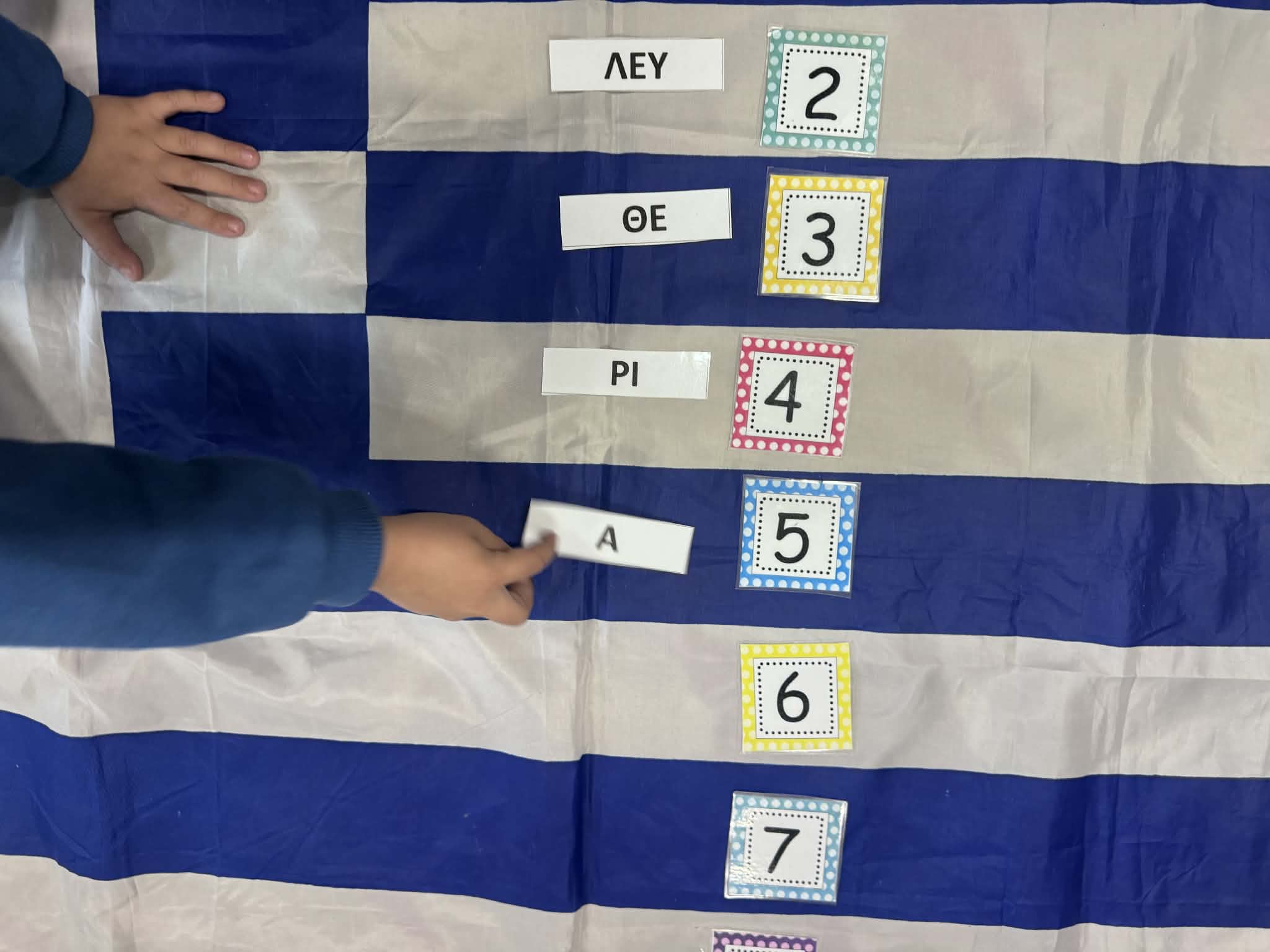 Οι μαθητές απαριθμούν τις λωρίδες της ελληνικής σημαίας,τοποθετούν τις συλλαβές στις αντίστοιχες λωρίδες , μαθαίνουν τον αριθμό 9 και το χρωματικό μοτίβο της ελληνικής σημαίας.