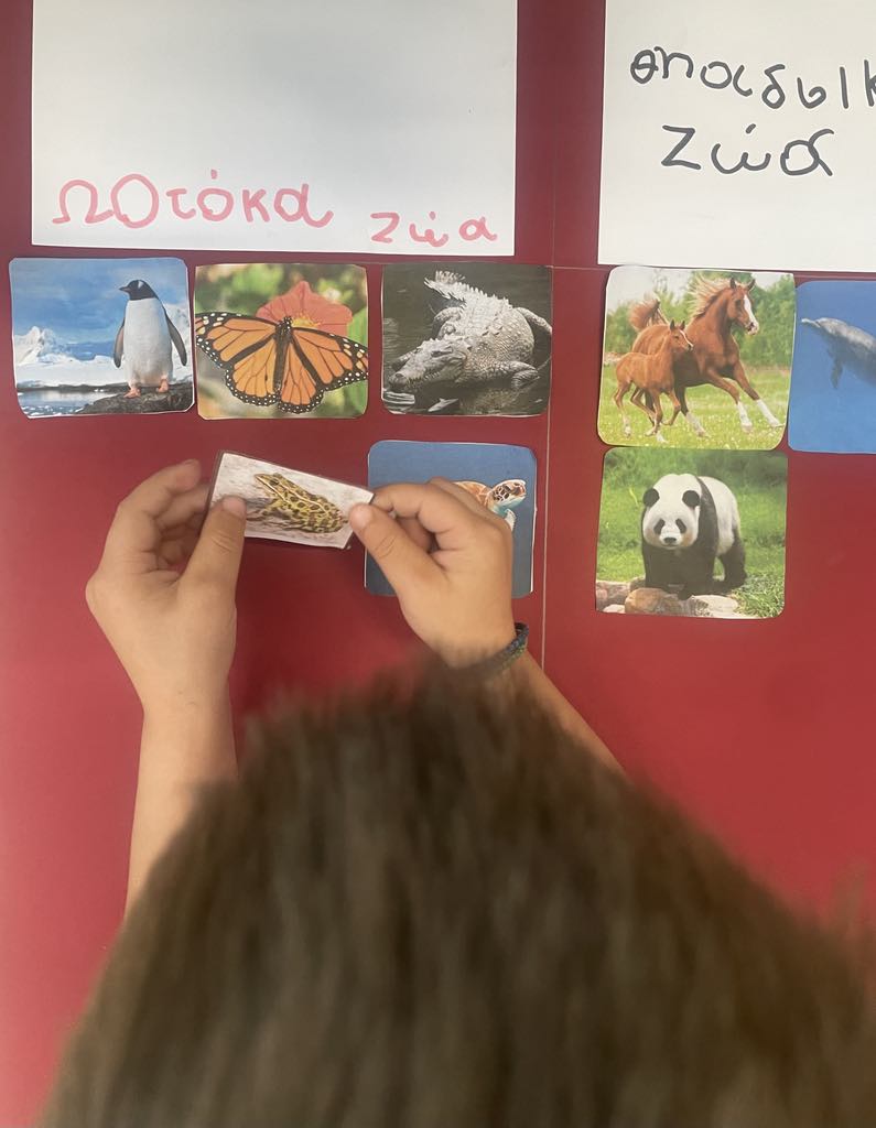 Οι μαθητές/τριες συζητούν για τη διάκριση θηλαστικών και ωοτόκων ζώων. Με εικόνες δημιουργούν μια νέα ταξινομία.