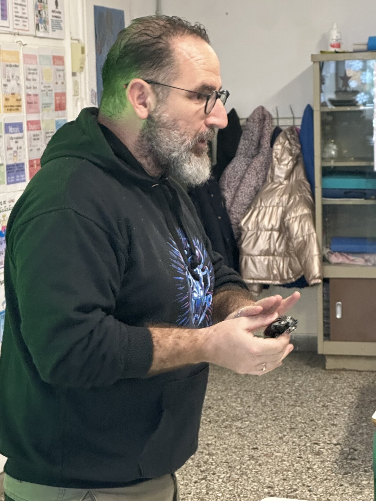 Την Τετάρτη 4/12/24 το Δ1 και Δ2 φιλοξένησαν τον ειδικό ερευνητή εντομολόγο, κύριο Αβτζή Δημήτρη. Στα πλαίσια του προγράμματος των Εργαστηρίων Δεξιοτήτων ´´Αειφόρο Σχολείο´´ τα παιδιά είχαν την ευκαιρία να συζητήσουν μαζί του για το περιβάλλον και την ύπαρξη των ζωντανών οργανισμών, δίνοντας όμως βάση κυρίως στα έντομα. Τα παιδιά διέκριναν ποια ονομάζονται έντομα , αλλά και ποια δεν θεωρούνται έντομα, πώς επιβιώνουν στο πέρασμα των χρόνων , ποιες είναι οι συνθήκες διαβίωσής τους, πώς αντιλαμβάνονται με τις αισθήσεις τους τα ερεθίσματα του περιβάλλοντος και πώς αντιμετωπίζουν τις απειλές. Επρόκειτο για ένα πολύ ενδιαφέρον μάθημα χάρη στην πολύ εύστοχη παρουσίαση του κυρίου Αβτζή, την επικοινωνιακή διάθεση, την προσέγγιση των ενδιαφερόντων των παιδιών, απαντώντας σε κάθε ερώτημά τους. Τα παιδιά έχουν επιδείξει ιδιαίτερο ενδιαφέρον για την ύπαρξή τους και συχνά στα διαλείμματα ασχολούνται με αυτά που εντοπίζουν σε πληθώρα στον χώρο της αυλής που παίζουν. Ο ενθουσιασμός τους εκτοξεύτηκε στην επαφή με μεγάλα σπάνια έντομα, αλλά και όταν κλήθηκαν να τα παρατηρήσουν με τη βοήθεια ενός στερεοσκόπιού. Ευχαριστούμε πολύ τον κύριο Αβτζή για τη γνώση και την όμορφη εμπειρία που χάρισε στους μαθητές και τις μαθήτριες της Δ τάξης.