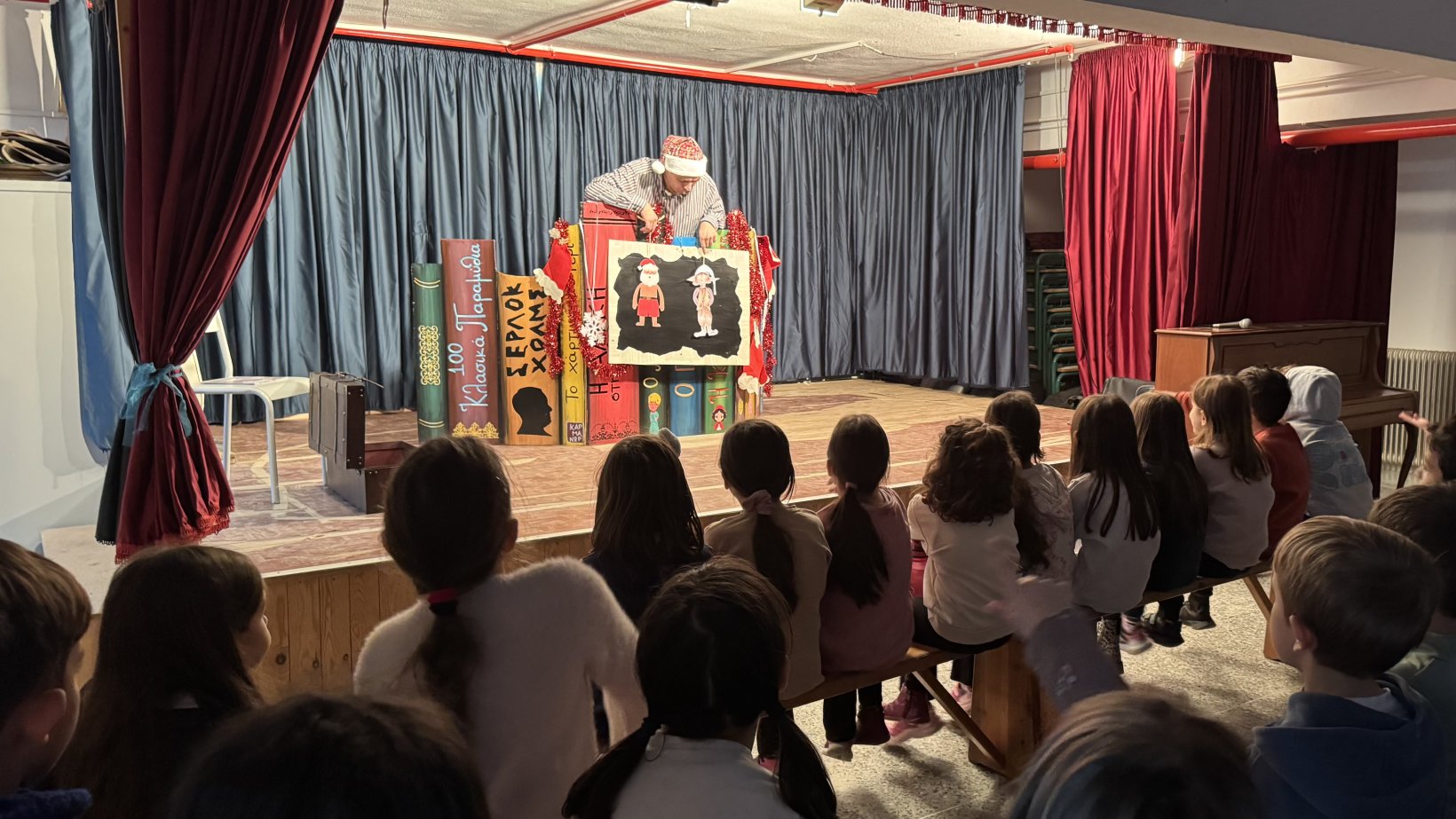 Η παράσταση μέσα από τραγούδια Χριστουγέννων, κουκλοθέατρο και γρίφους για τα παιδιά είχε σκοπό να καλλιεργήσει στους μαθητές/-τριες τη φιλαναγνωσία. Στο τέλος, αναφέρθηκαν και τα στάδια της δημιουργίας ενός βιβλίου ενώ δόθηκε σε όλα τα παιδιά ως δώρο το ομώνυμο με την παράσταση βιβλίο της Μαρίας Καριωτάκη.
