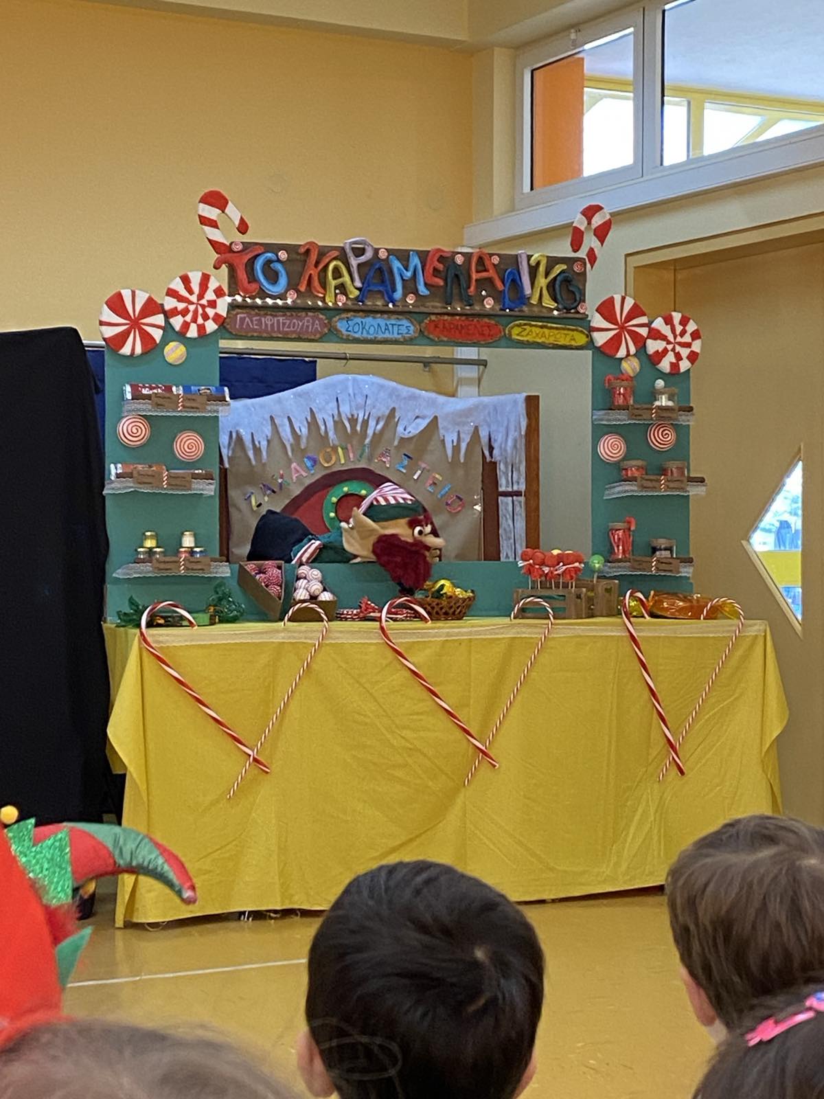 Η ομάδα κουκλοθεάτρου Αντράλα σήμερα επισκέφτηκε το Νηπιαγωγείο και μας παρουσίασε την παράσταση με τίτλο «Ένας καλικάντζαρος στο καραμελάδικο».