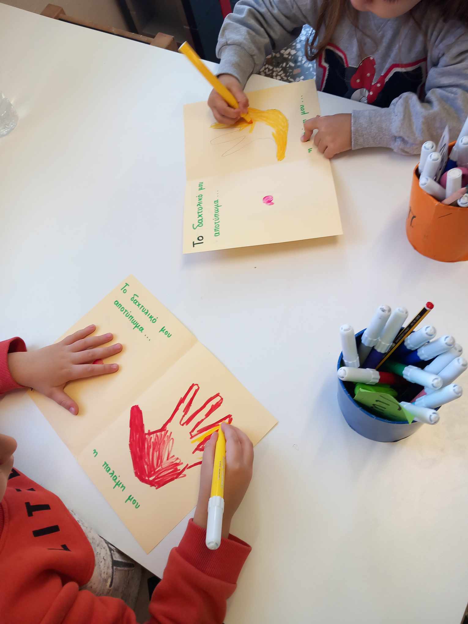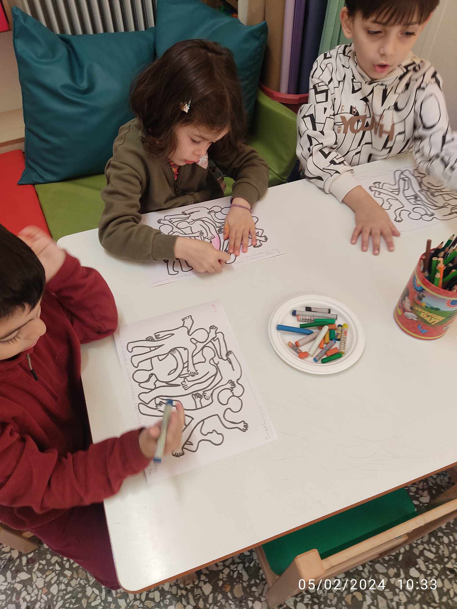 Ο Πίνακας του Φερνάντ  Λεζέρ, μας έδωσε το ερέθισμα να παίξουμε παιχνίδια με όλο μας το σώμα, να εστιάσουμε στις θέσεις που μπορεί να πάρει το σώμα μας σε σχέση με τον χώρο και να δημιουργήσουμε εικαστικά έργα με ανθρώπινες μορφές.