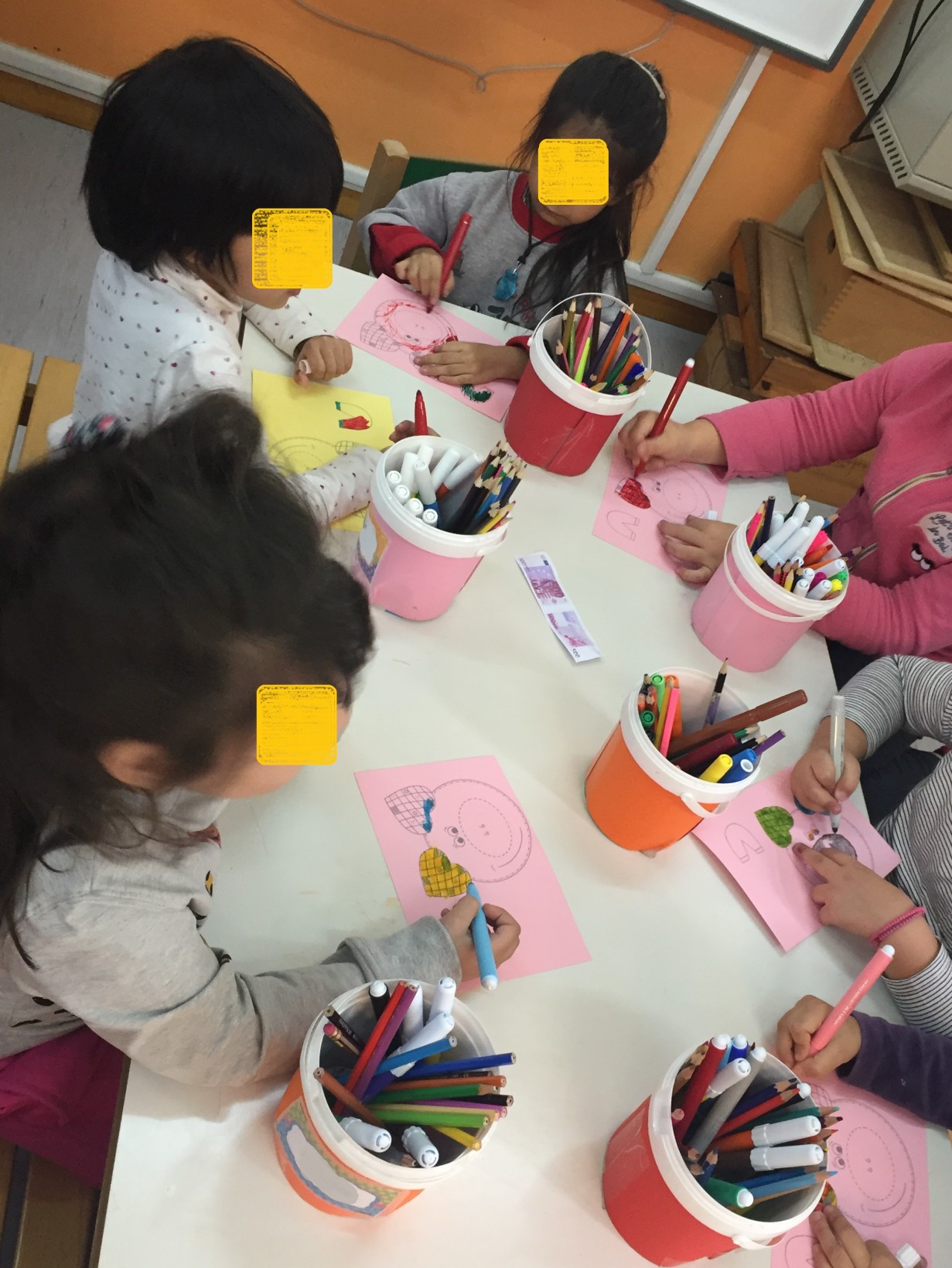 Ώρα να φτιάξουμε κι εμείς τους δικούς μας καταλόγους! Χωριστήκαμε σε ομάδες των τριών παιδιών και φτιάξαμε το εξώφυλλο του καταλόγου και στη συνέχεια το εσωτερικό του με εικόνες φαγητών και τις τιμές τους… ακριβότερες ήταν οι τούρτες!