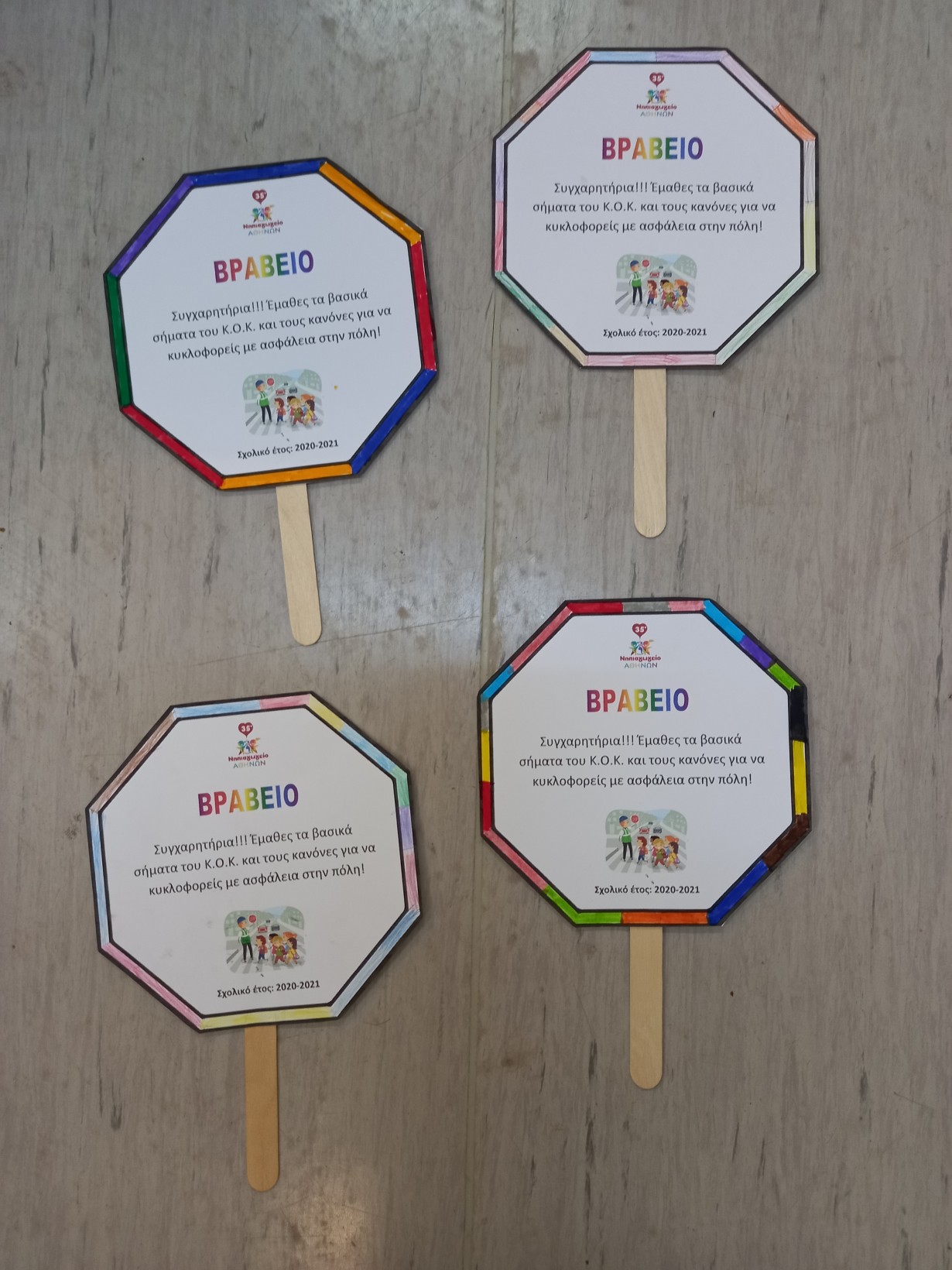 Μάθαμε τα βασικά σήματα και κυρίως ασχοληθήκαμε με το φανάρι. Ο Σταμάτης και ο Γρηγόρης ήταν οι αγαπημένοι μας και πλέον ξέρουμε τι να κάνουμε όταν ανάβουν στο φανάρι!