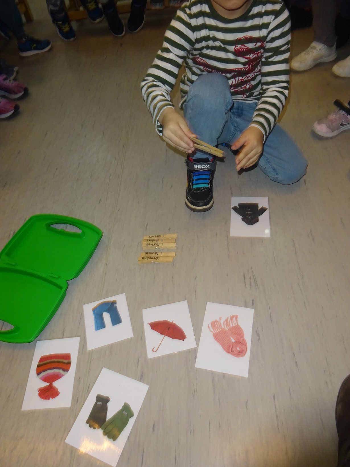 Μιλήσαμε για τα ρούχα του χειμώνα και παίξαμε πολλά αυτοσχέδια επιτραπέζια παιχνίδια. Ανοίξαμε το “βαλιτσάκι” με τα χειμωνιάτικα ρούχα