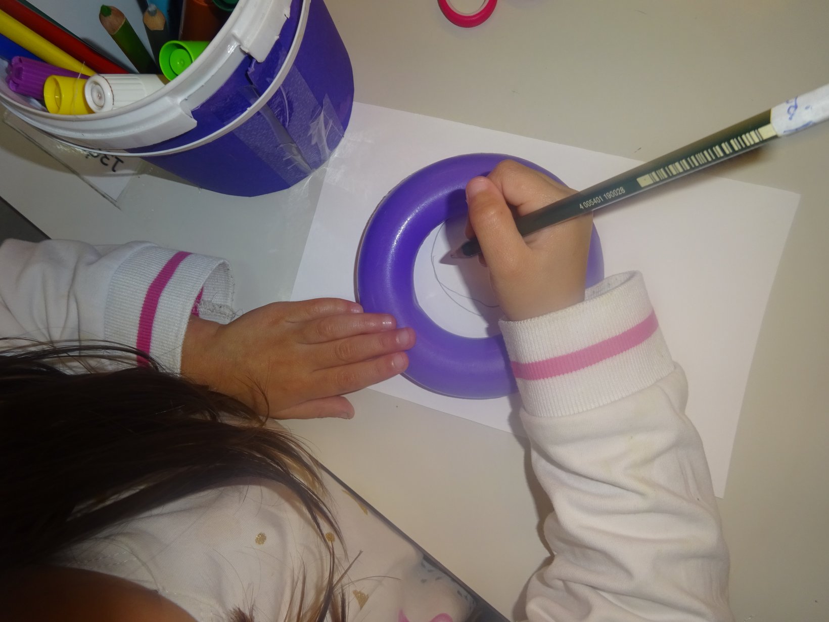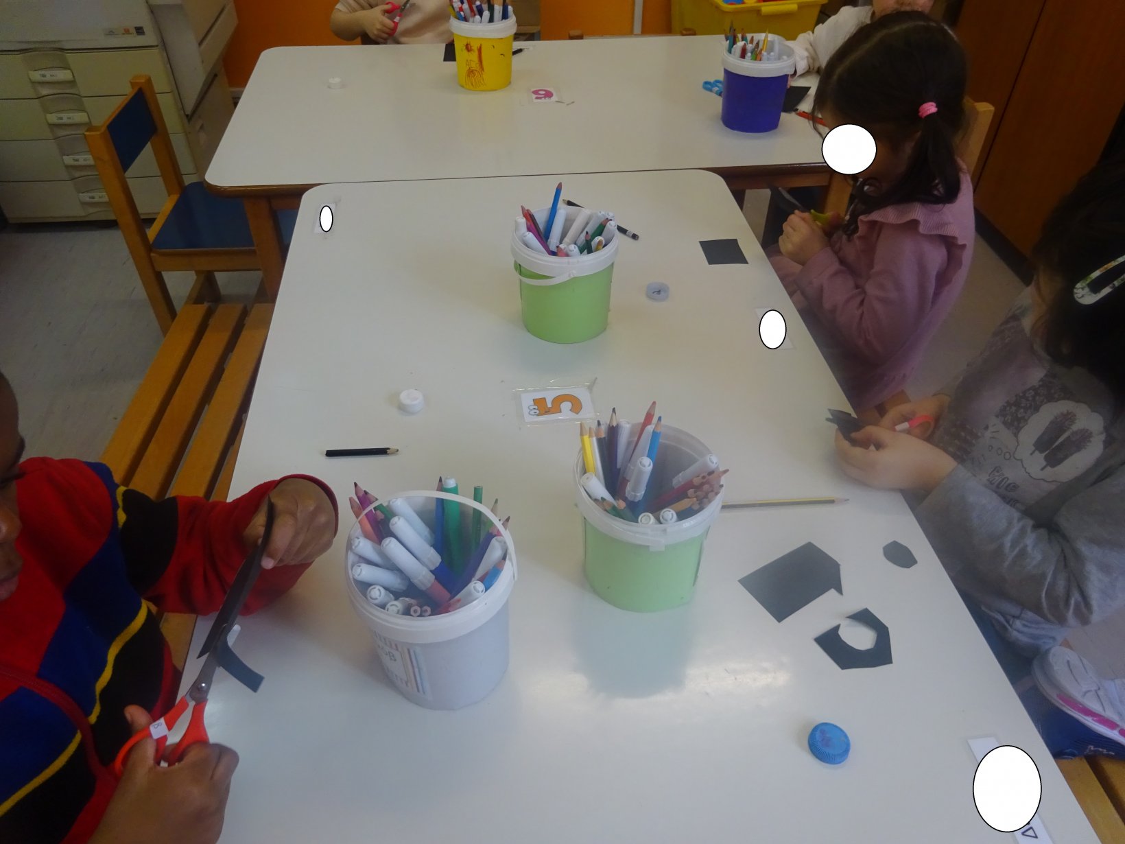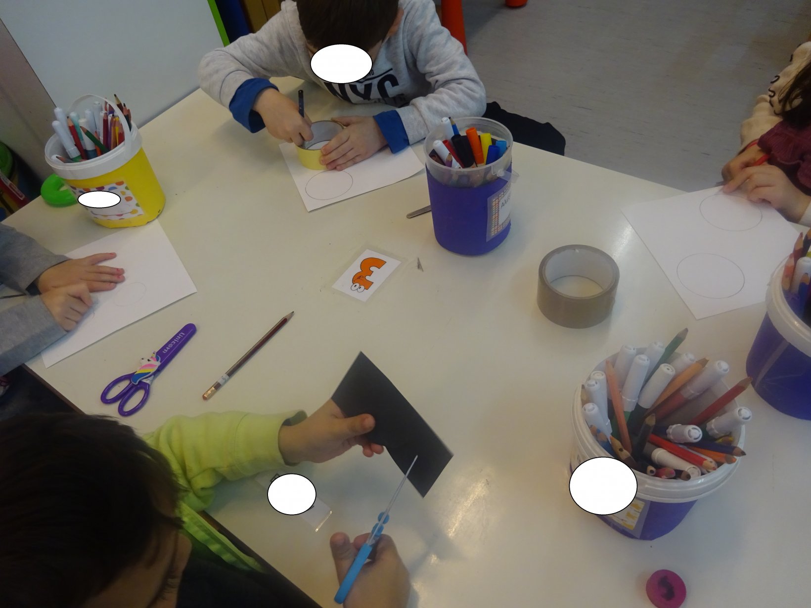 Σχεδιάσαμε μόνοι μας άσπρους κύκλους για τα αυτάκια, μαύρους μικρότερους για τα ματάκια και τα κόψαμε.