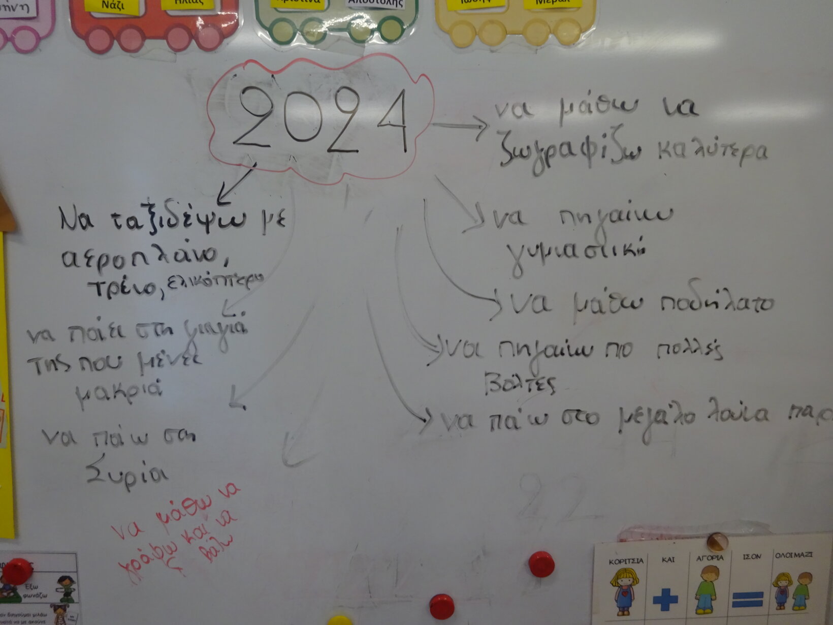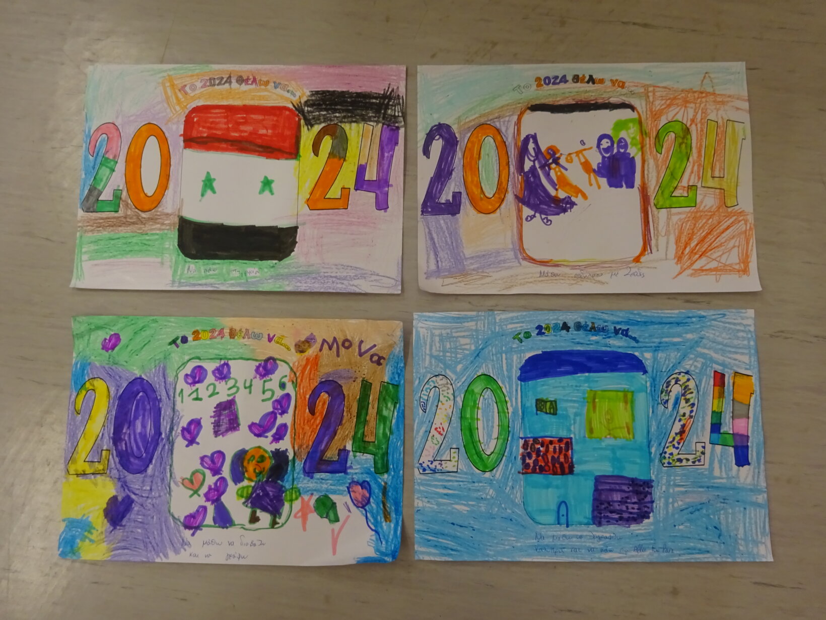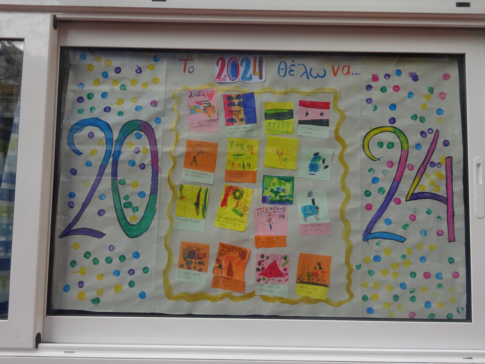 Έφτασε το 2024 και επιστρέψαμε στο σχολείο μας ξεκούραστοι και ορεξάτοι! Αφού ανταλλάξαμε ευχές για την νέα χρονιά και είπαμε τα νέα μας για το πώς περάσαμε στις διακοπές μας, συζητήσαμε στην παρεούλα για τους στόχους μας μέσα στην νέα χρονιά! “Τι θέλω να πετύχω μέσα στο 2024;” Τα παιδιά σκέφτηκαν και μερικές από τις απαντήσεις τους ήταν: “να μάθω να ζωγραφίζω καλύτερα”, ” να μάθω να διαβάζω”, “να ταξιδέψω με αεροπλάνο”, “να μάθω να κάνω ποδήλατο με δύο ρόδες”, “να ταξιδέψω στη Συρία” κλπ.. Καταγράψαμε τους στόχους μας στον πίνακα της τάξης μας και στη συνέχεια τους ζωγραφίσαμε σε χαρτί.