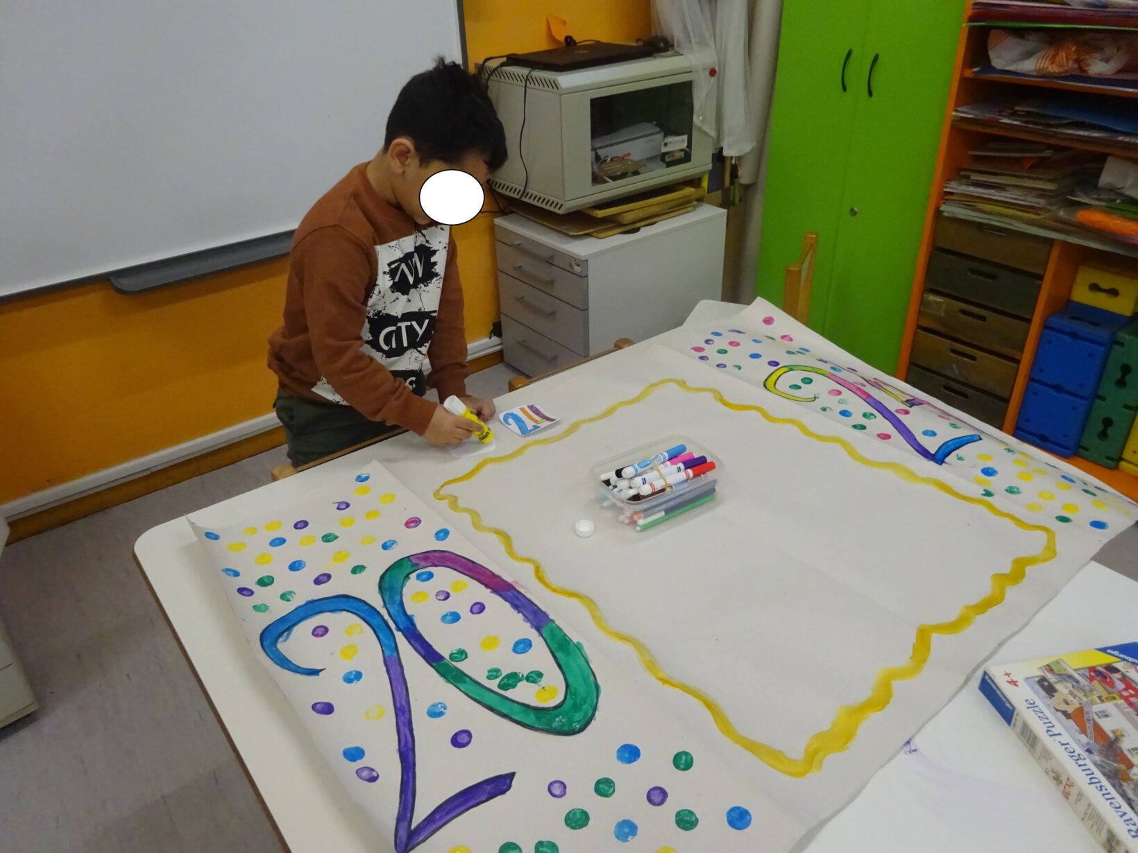 Σειρά είχε μια ομαδική εργασία για να υποδεχτούμε και καλλιτεχνικά το 2024 στην τάξη μας και να θυμόμαστε τους στόχους που θέσαμε! Βάψαμε με τέμπερες και πινέλα το 2024 και το στολίσαμε με κουκκίδες που έμοιαζαν με πυροτεχνήματα.