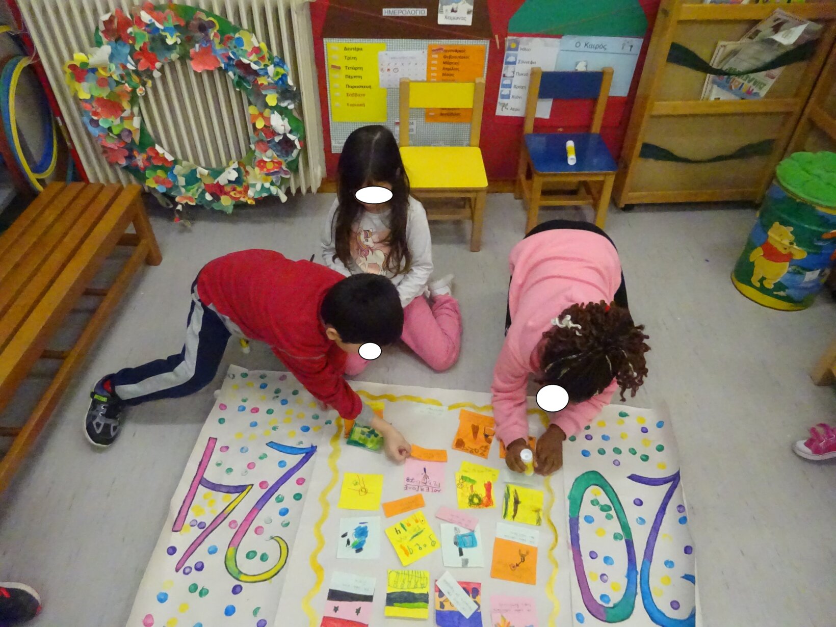 Στη μέση ξεχωρίσαμε ένα πλαίσιο σαν κορνίζα και μέσα κολλήσαμε πολύχρωμα χαρτάκια με τους στόχους μας που είχαμε ζωγραφίσει νωρίτερα. Κολλήσαμε το έργο μας στο παράθυρο για να το καμαρώνουμε κάθε μέρα!