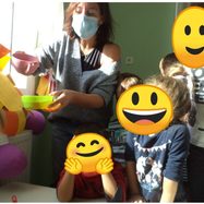Συμμετοχή σε αισθητηριακό παιχνίδι, συμπεριλαμβάνοντας όλα εκείνα τα υλικά που καταφέραμε να συγκεντρώσουμε από τον αύλειο χώρο του σχολείου μας.