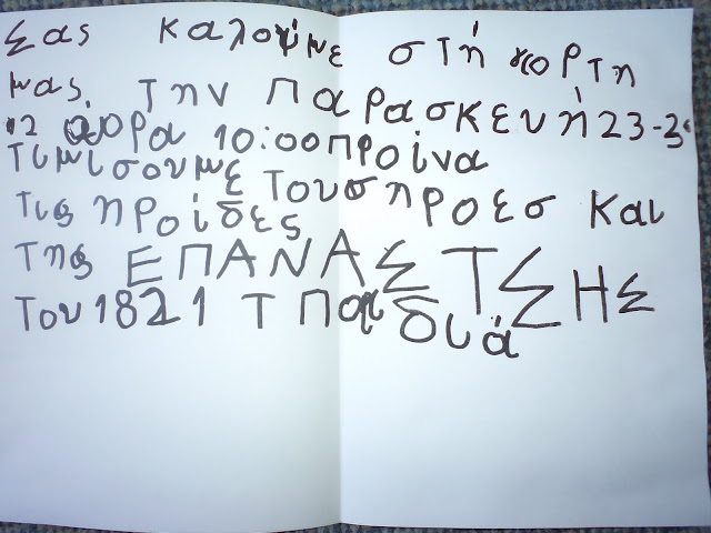 Τα παιδιά ρωτούσαν συνεχώς τί είπε ο καθένας με τη σειρά του και τους έκανε πολύ εντύπωση που σκοτώνονταν για την Ελευθεριά!!!
