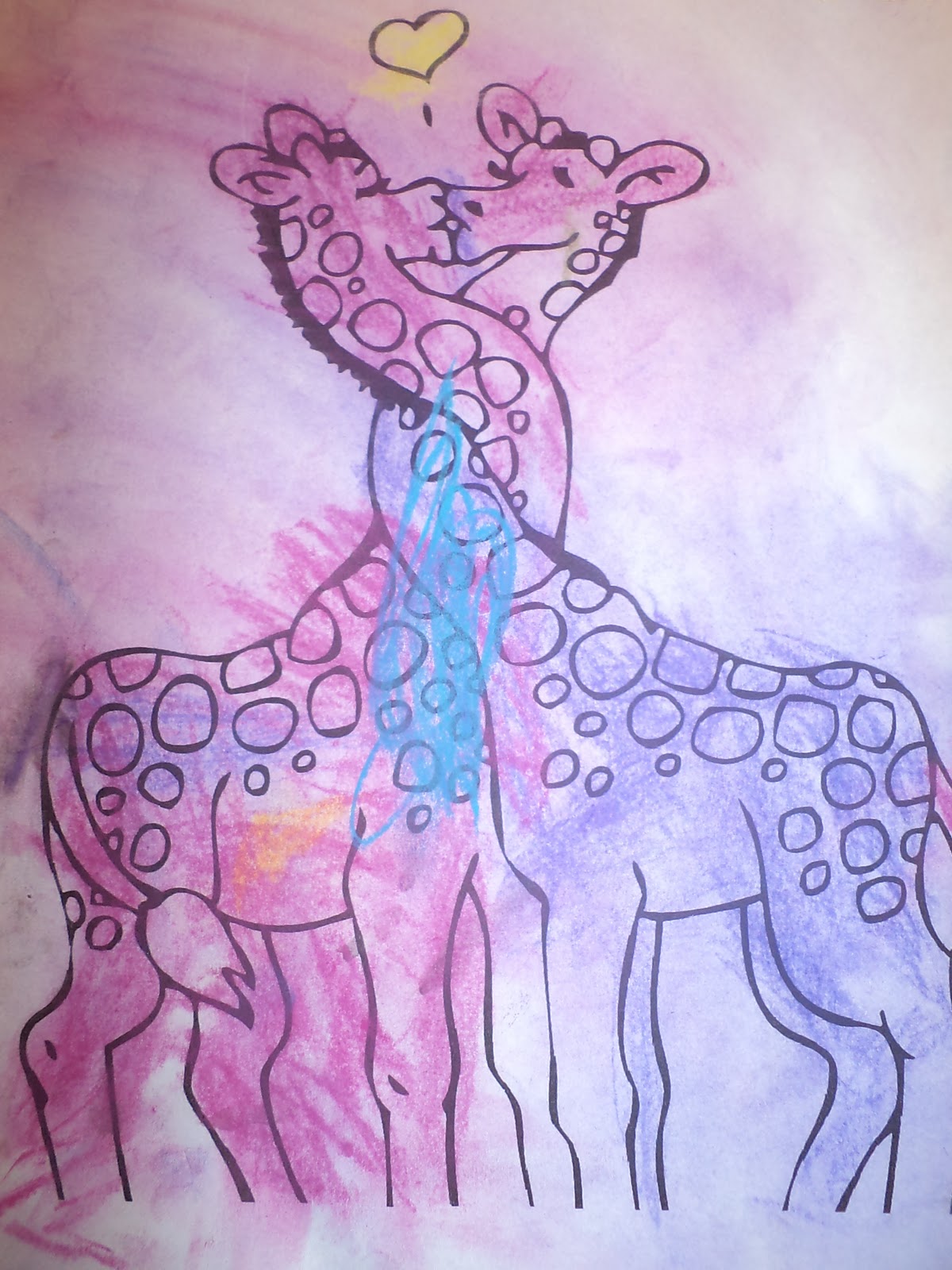 Τα κορίτσια ζωγράφισαν με λαδοπαστέλ.