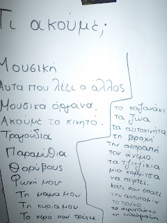 Διαπιστώσαμε πως όλη η ζωή μας έχει ήχους,η καθημερινότητά μας,η εργασία μας ,το σχολείο μας,το σπίτι μας,η φύση ,η θάλασσα,το νερό.