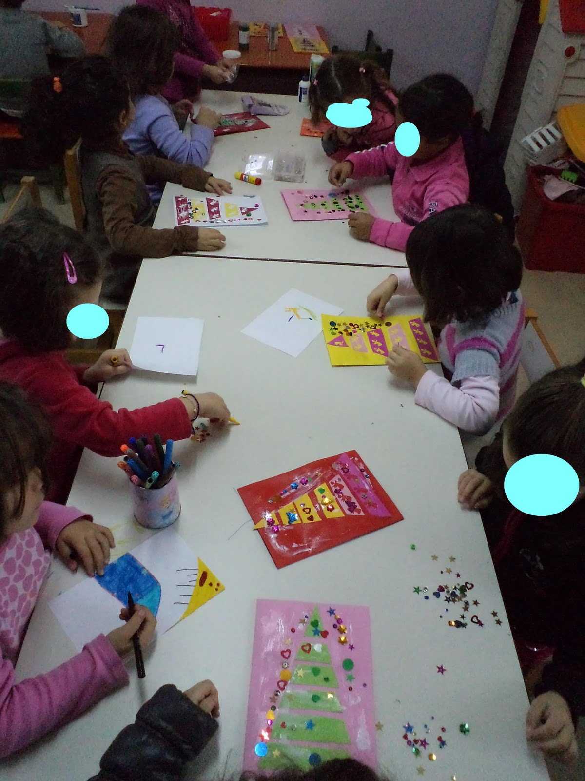 Αυτά τα Χχριστούγεννα όπως και τα προηγούμενα αφήνω τα παιδιά να με πάνε όπου θέλουν αυτά.Τα Χριστούγεννα είναι ένα θέμα μεγάλο και δε τελειώνει ποτέ.Τα παιδιά είναι αυτά που θα αποφασίσουν τί θέλουμε να κάνουμε!!Έτσι ,η δουλειά στο νηπιαγωγείο γίνεται πιο διασκεδαστική για μικρούς και μεγάλους!!!Τολμήστε το!!!