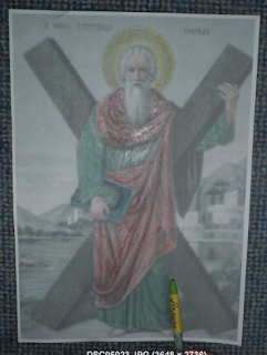 | Διαλέξαμε την εικόνα του Άγιου Ανδρέα και αποφασίσαμε να την ζωγραφίσουμε με κερομπογιές. |