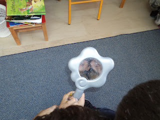πήραμε ένα καθρέφτη από τη γωνιά της μεταμφίεσης και δραματοποιήσαμε το παραμύθι.