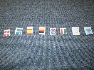Αφού ξεχωρίσαμε 8 σημαίες(συνήθως πάνω από 7 πράγματα στην ηλικία αυτή δύσκολα κρατιούνται στην βραχυπρόθεσμη μνήμη),παίξαμε το παιχνίδι <>