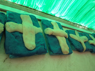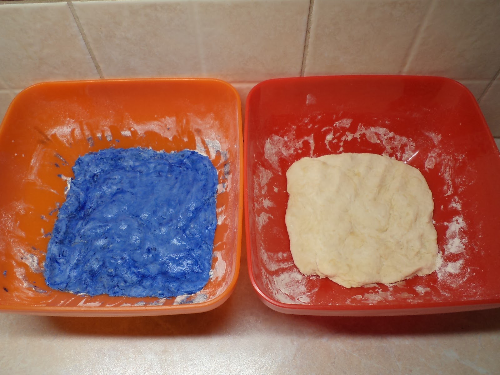 Έπειτα φτιάξαμε μια ωραία κατασκευούλα απο ζυμάρι όπου χρωματίσαμε το ζυμάρι στα χρώματα της ελληνικής σημαίας.