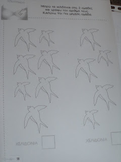 Και κάναμε και μια εργασιούλα για τα χελιδονάκια για να τα αποχαιρετίσουμε.Μάθαμε πως πετάνε όλα μαζί,αφού συγκεντρωθούν πρώτα για να πραγματοποιήσουν το μακρινό τους ταξίδι.
