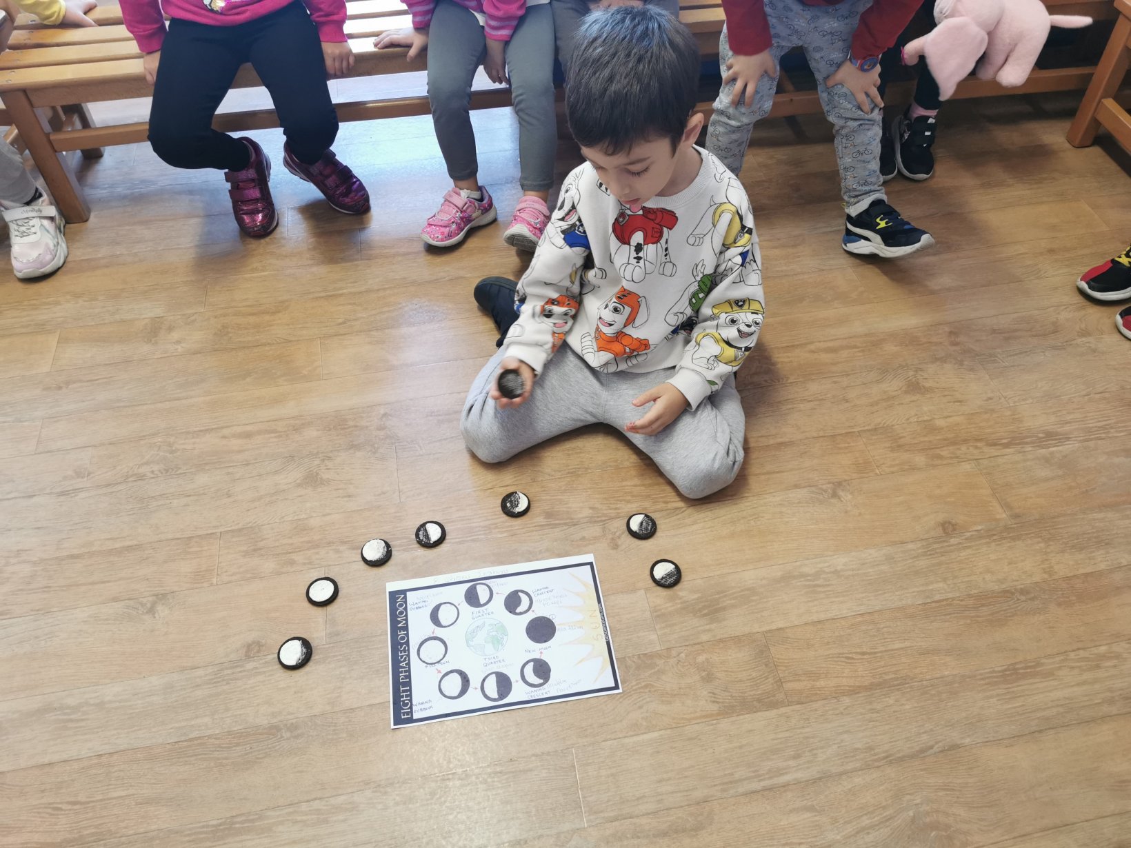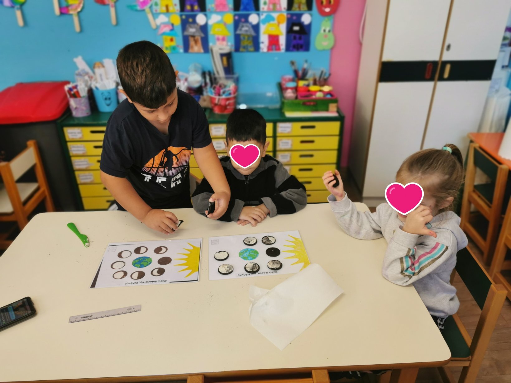 1. Τοποθετούμε στο χώρο τρία χαρτόνια. Το ένα χαρτόνι έχει ζωγραφισμένο πάνω ένα