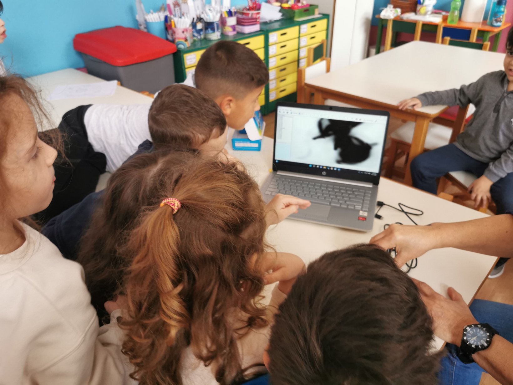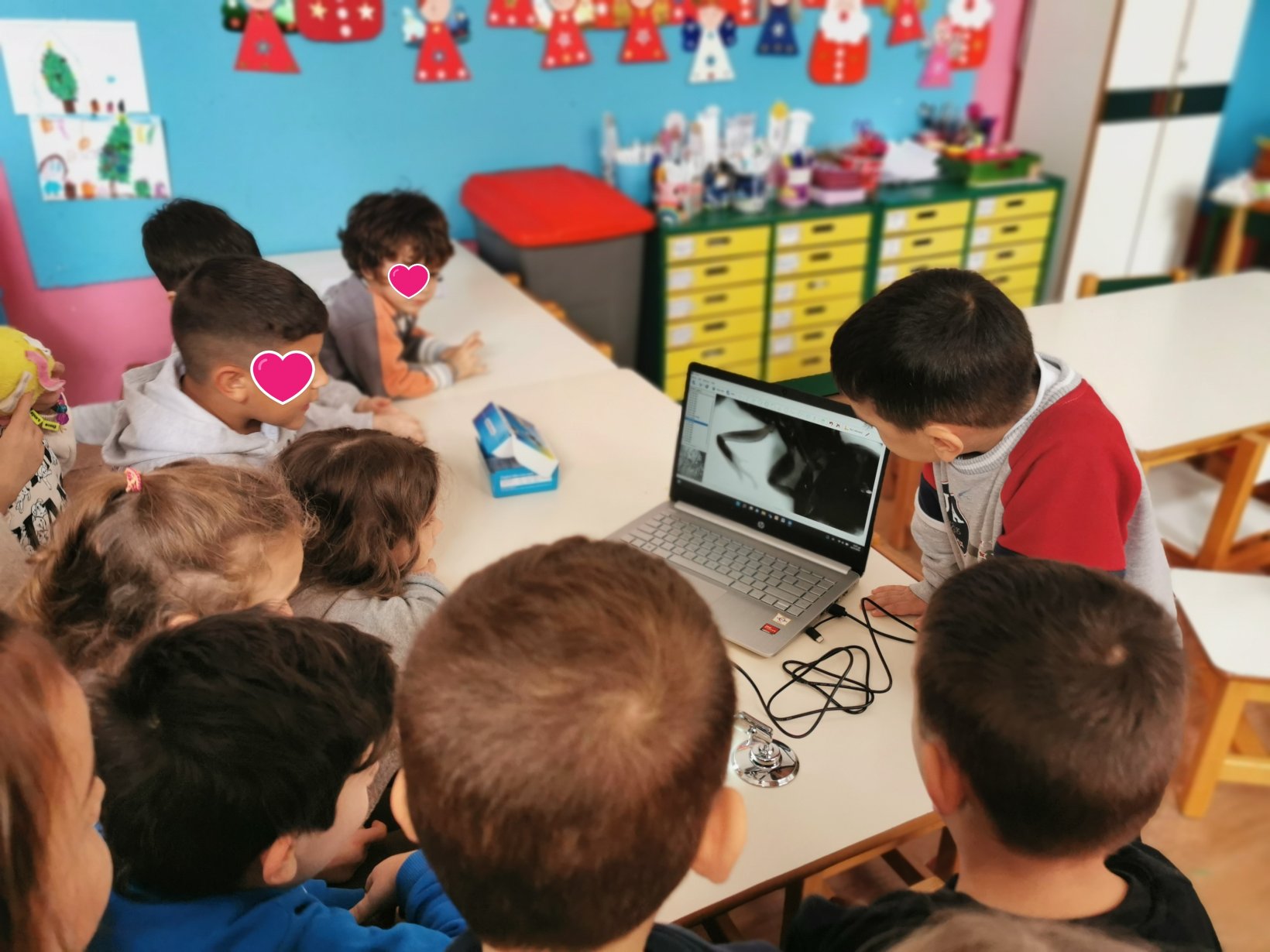 1. Συνδέουμε το μικροσκόπιο με τον Η/Υ και τον προτζέκτορα, ούτως ώστε όλα τα παιδιά να