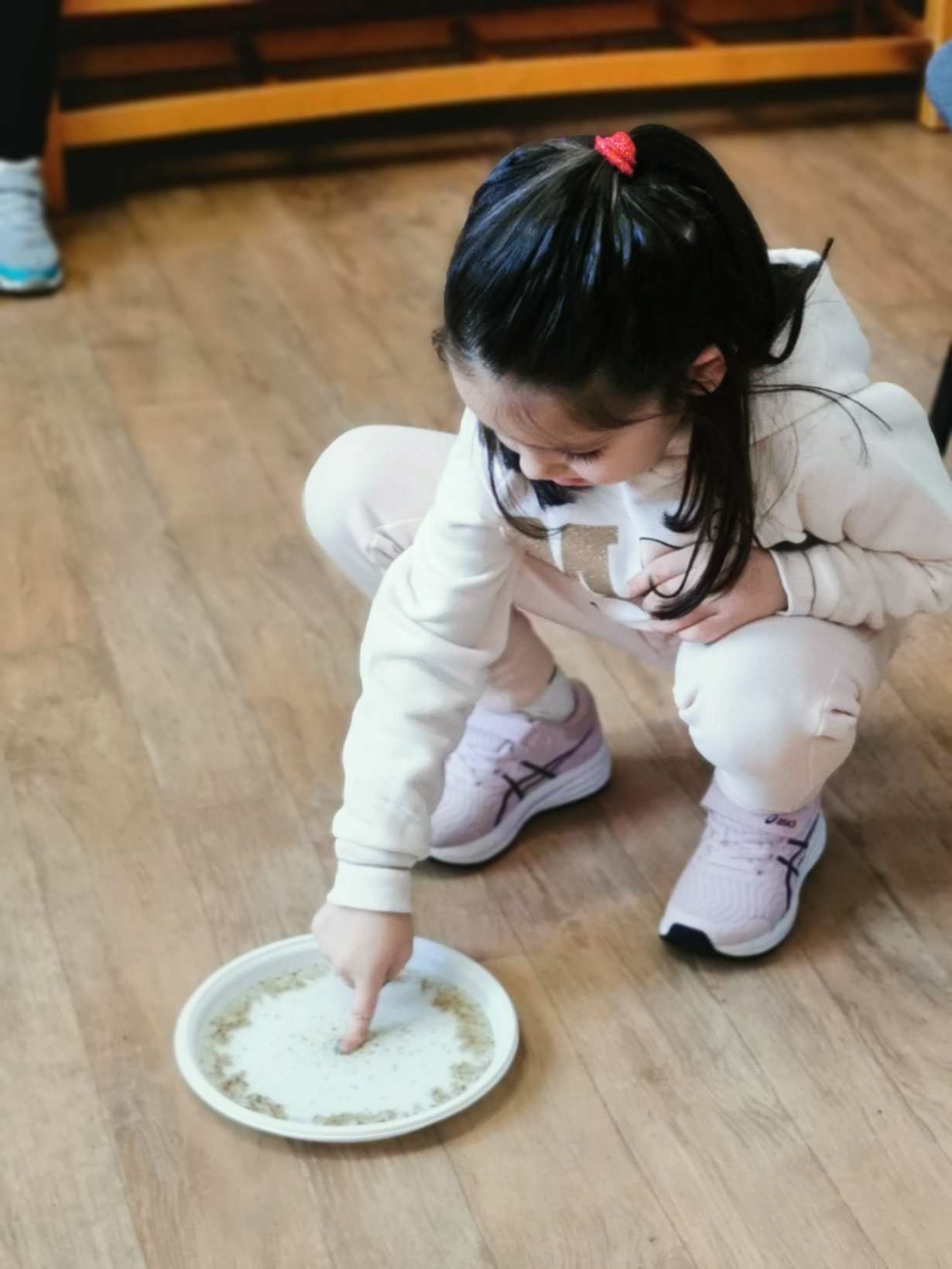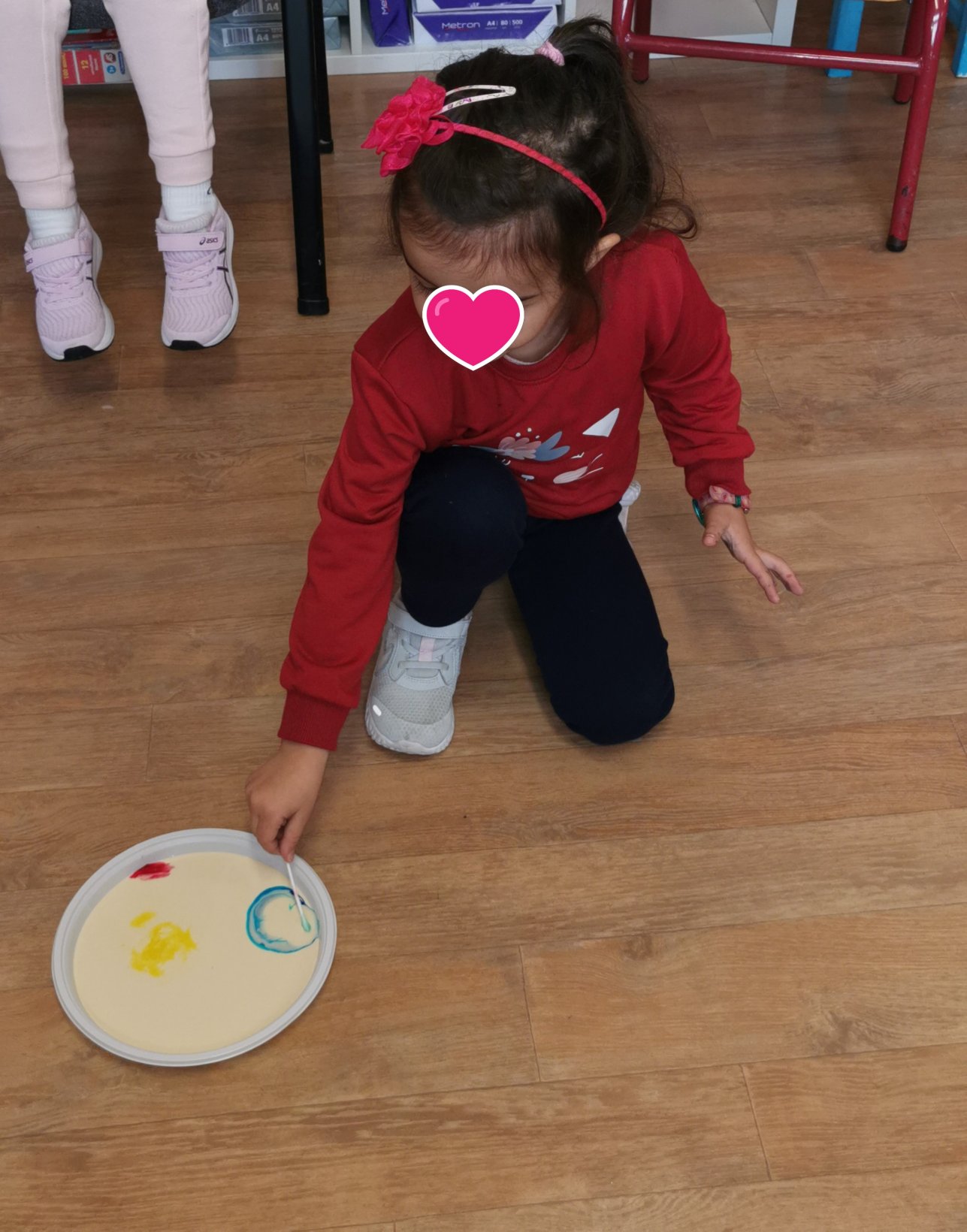 1. Τοποθετούμε σε ένα πιατάκι πλαστικό γάλα.