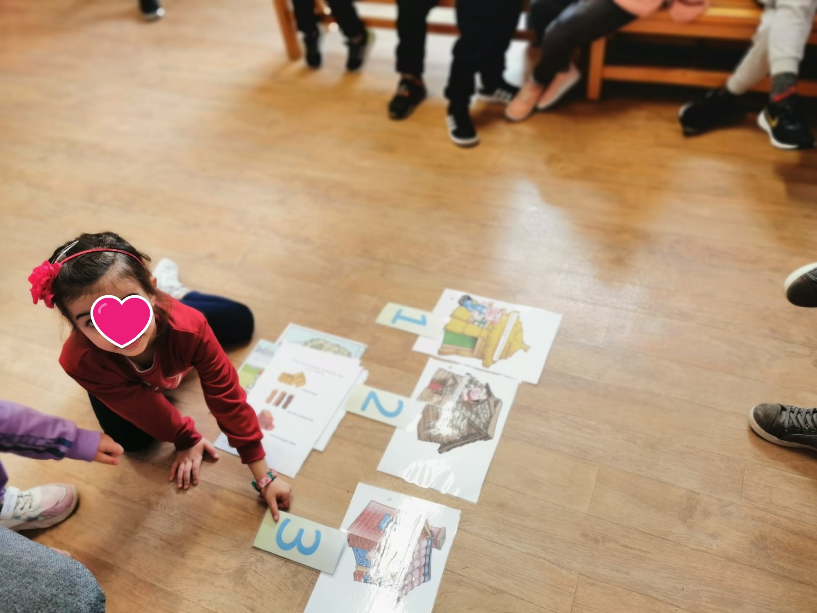 1. Διαβάζουμε το παραμύθι με τα τρία γουρουνάκια και εξερευνούμε τα μέρη του σχεδιαστικού κύκλου. Ξεκινάμε με τον ορισμό ενός προβλήματος. Για παράδειγμα στο παραμύθι μας το πρόβλημα είναι να φτιάξουμε ένα σπίτι που θα αντέχει στο ισχυρό φύσημα του κακού του λύκου.