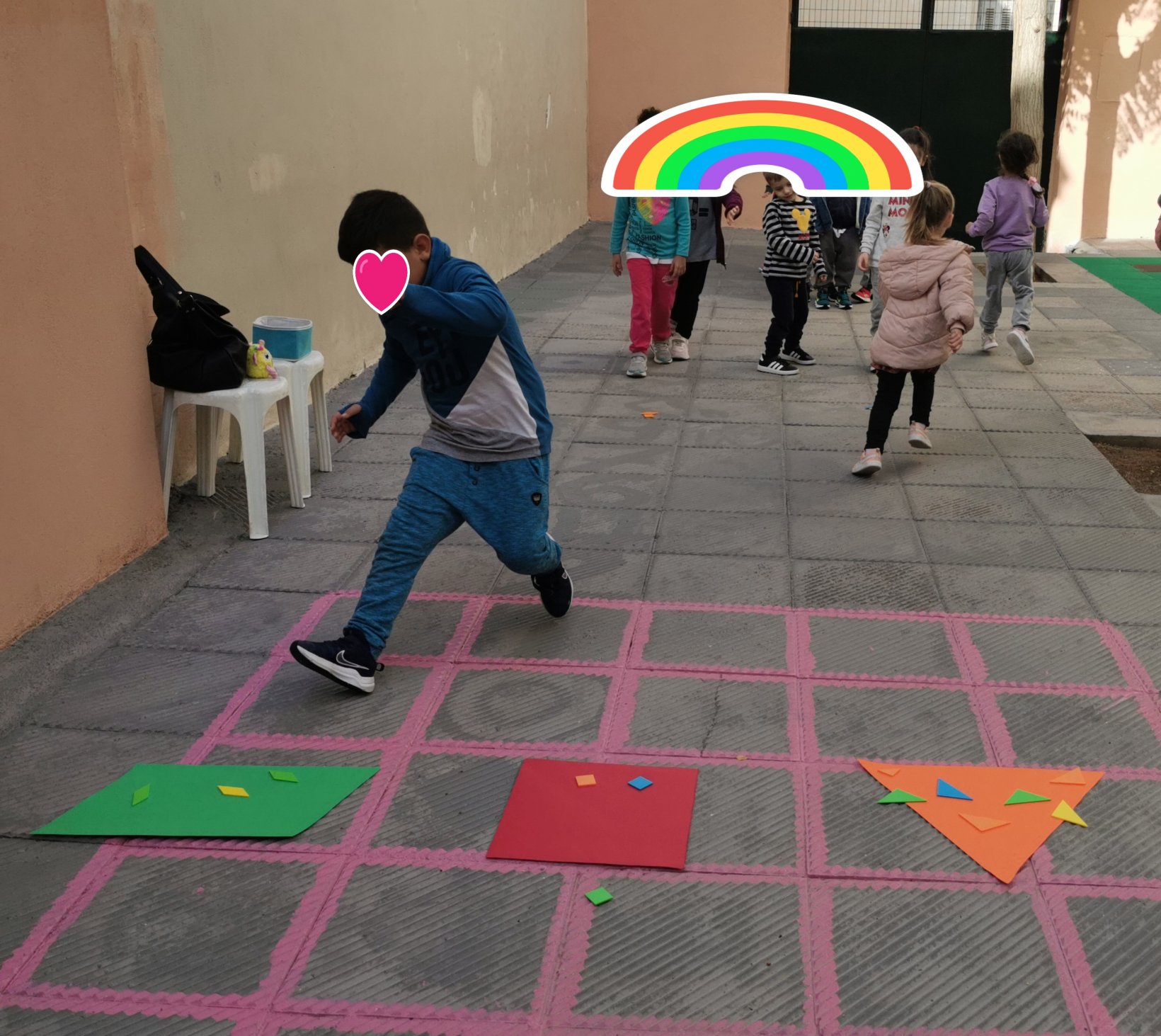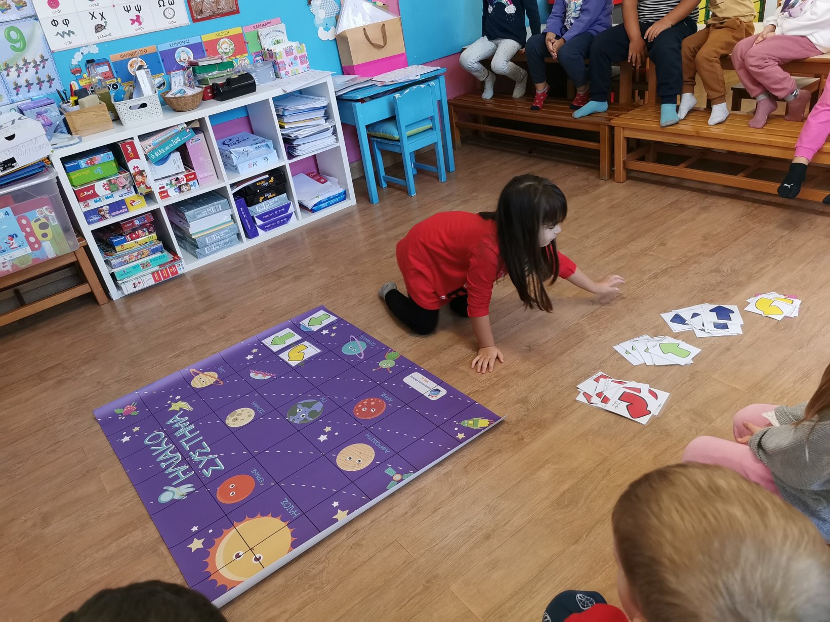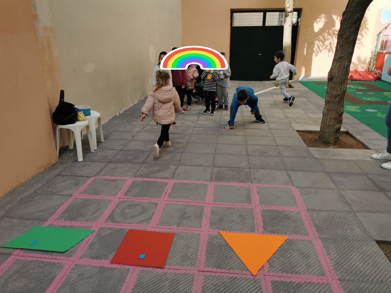 είναι να τρέξει και να ακουμπήσει το γεωμετρικό σχήμα στο χαρτόνι που έχει επάνω του