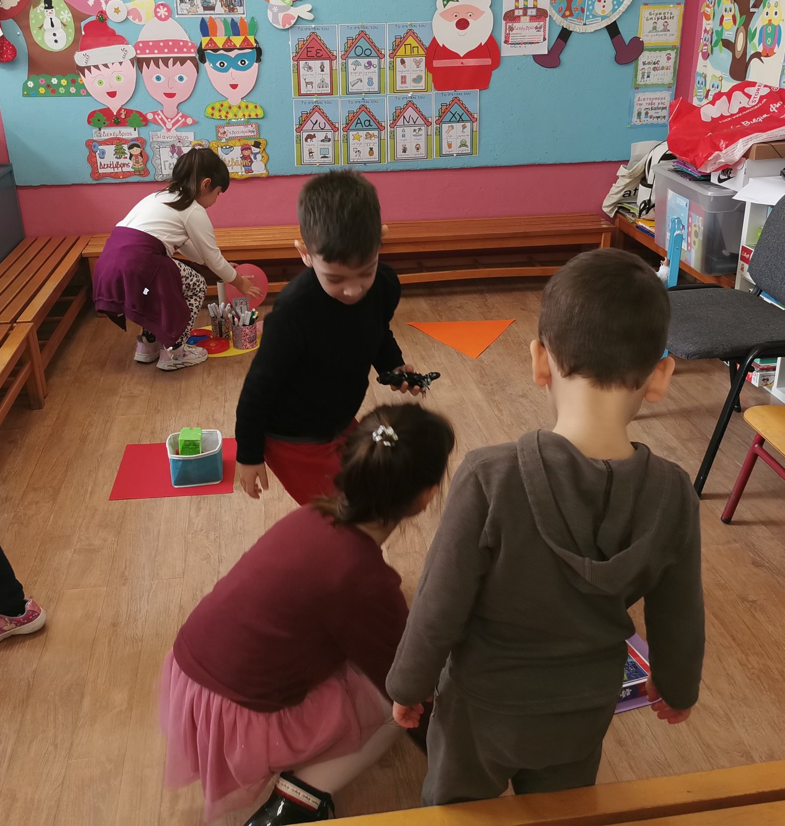 Αρχικά, ξεκινάει ένα μέλος της ομάδας κρατώντας ένα γεωμετρικό σχήμα. Αποστολή του
