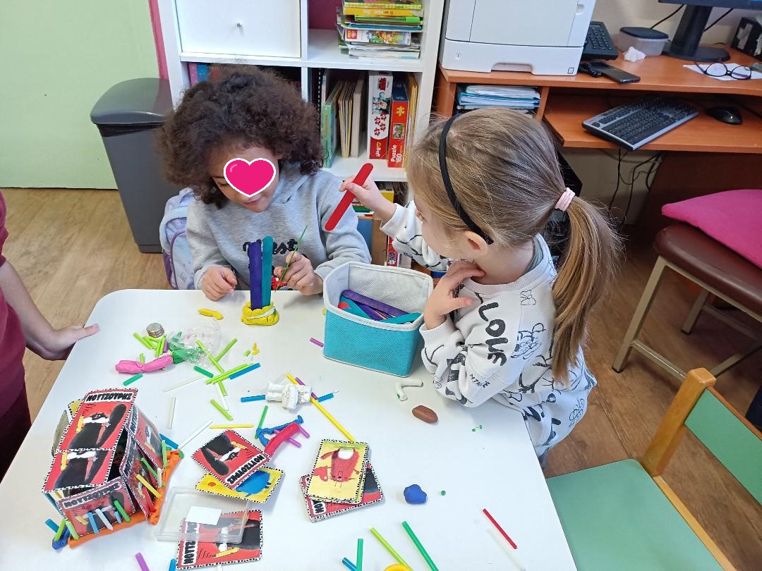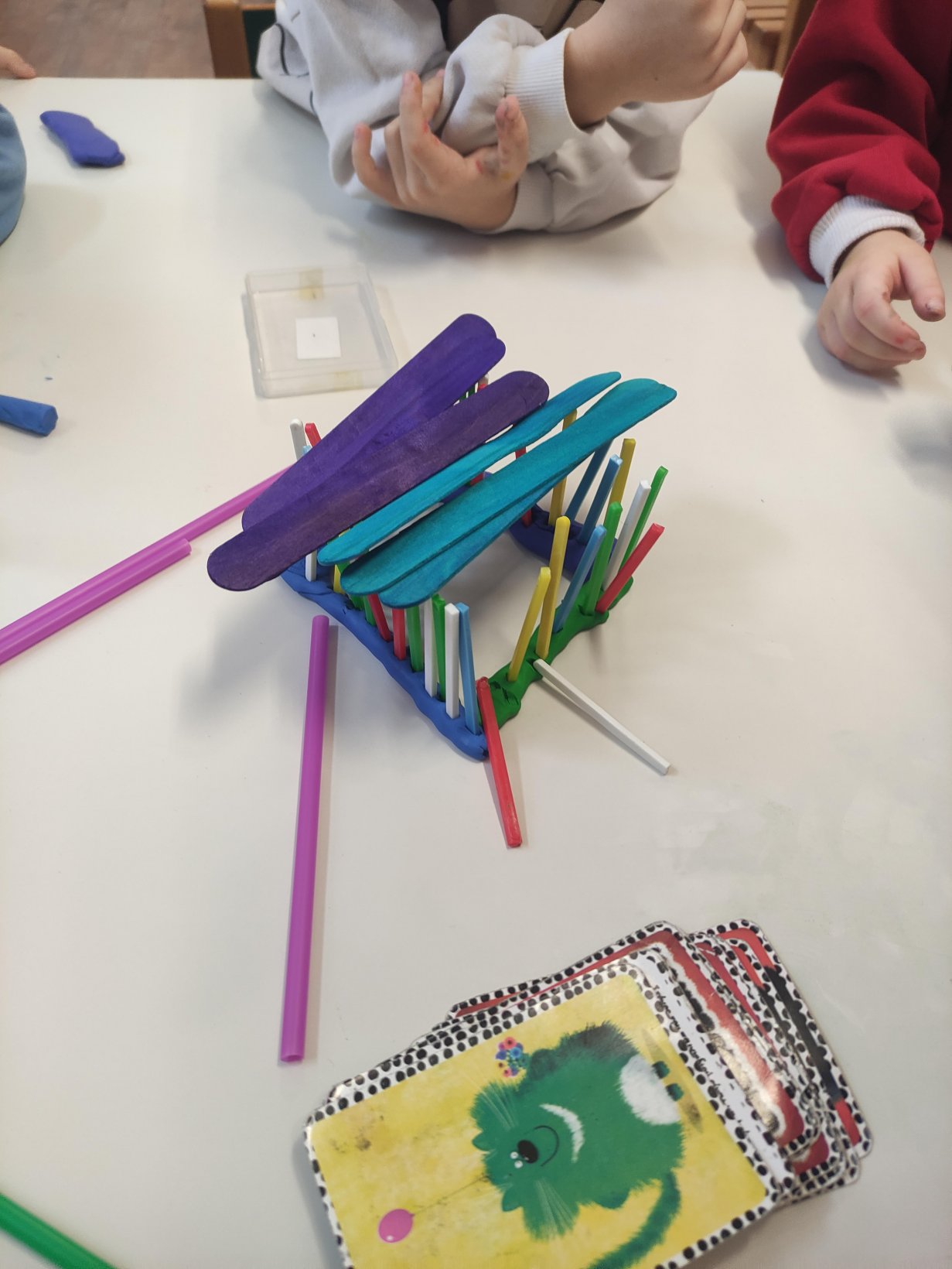 Εντοπίζουμε υλικά όπως πλαστελίνη, ξυλάκια, καλαμάκια, καθαριστές πίπας,τραπουλόχαρτα και άλλα πολλά.