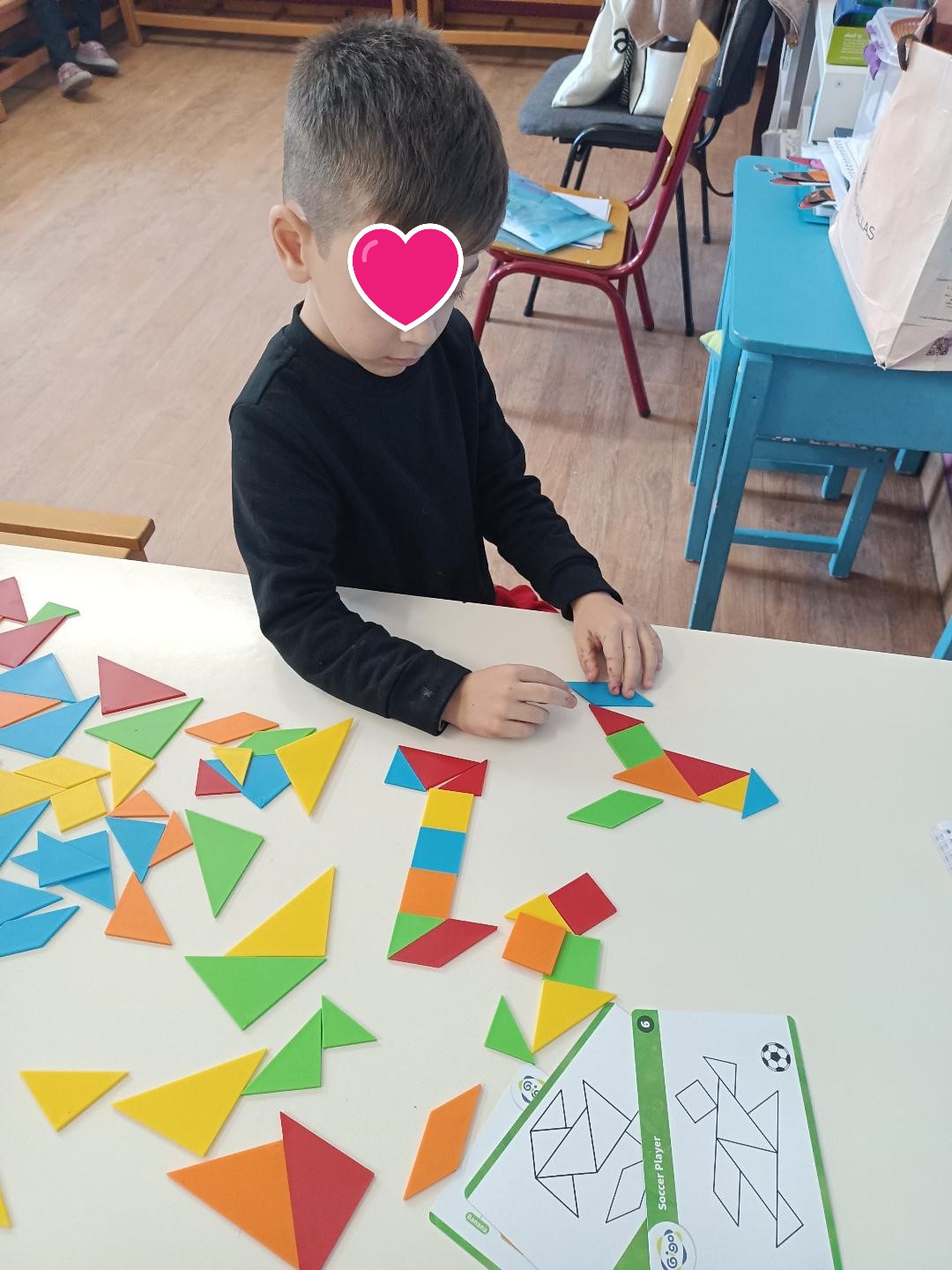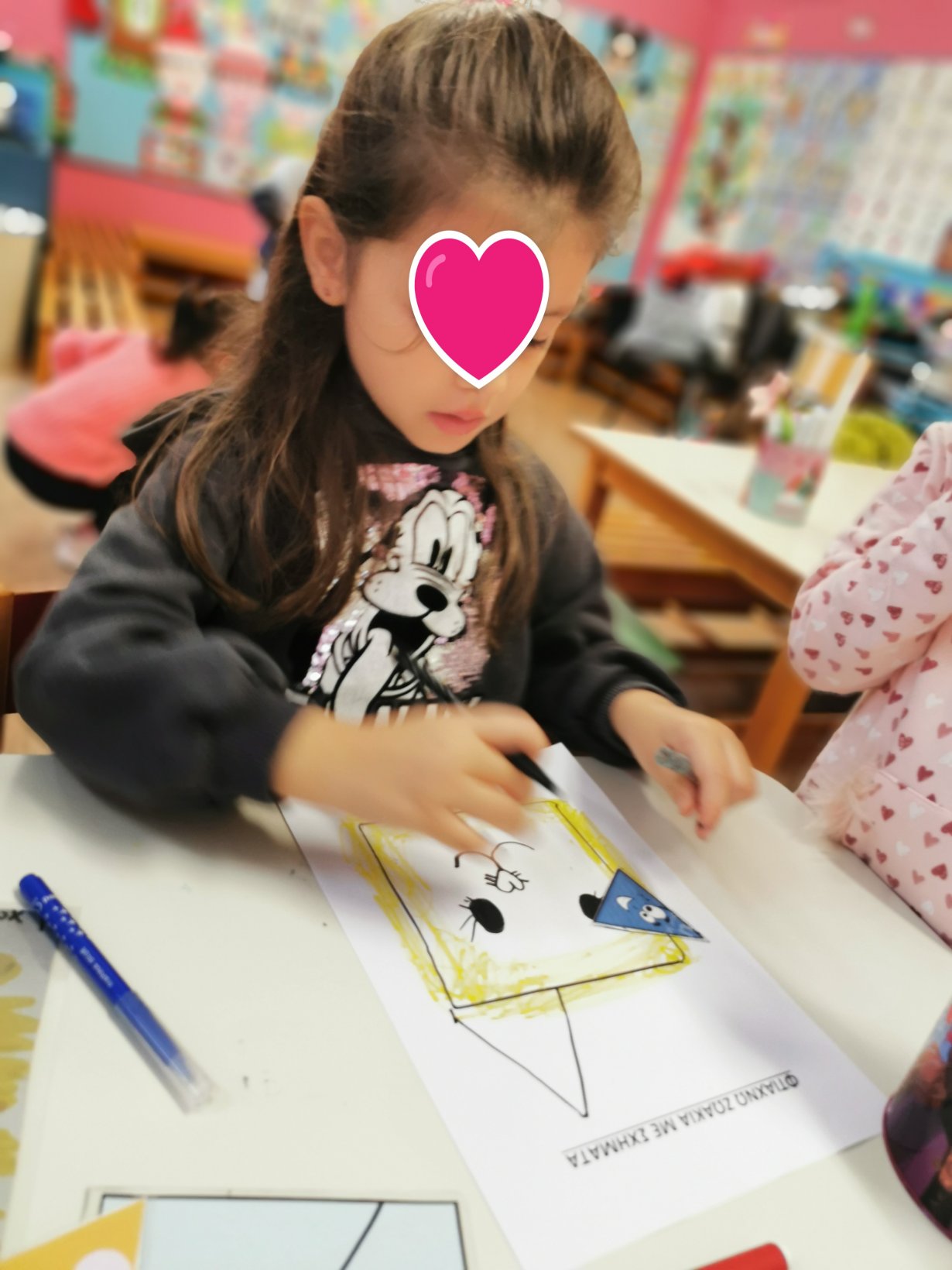 συνδυάζοντας τα γεωμετρικά σχήματα που τους μοιράστηκαν. Ζητούμενο είναι να συνδυάσουν έτσι τα σχήματα, ώστε να προκύψει η εικόνα κάποιου ζώου. Αν τα σχήματα δεν έχουν χρώμα μπορούν να τα ζωγραφίσουν όπως επιθυμούν.