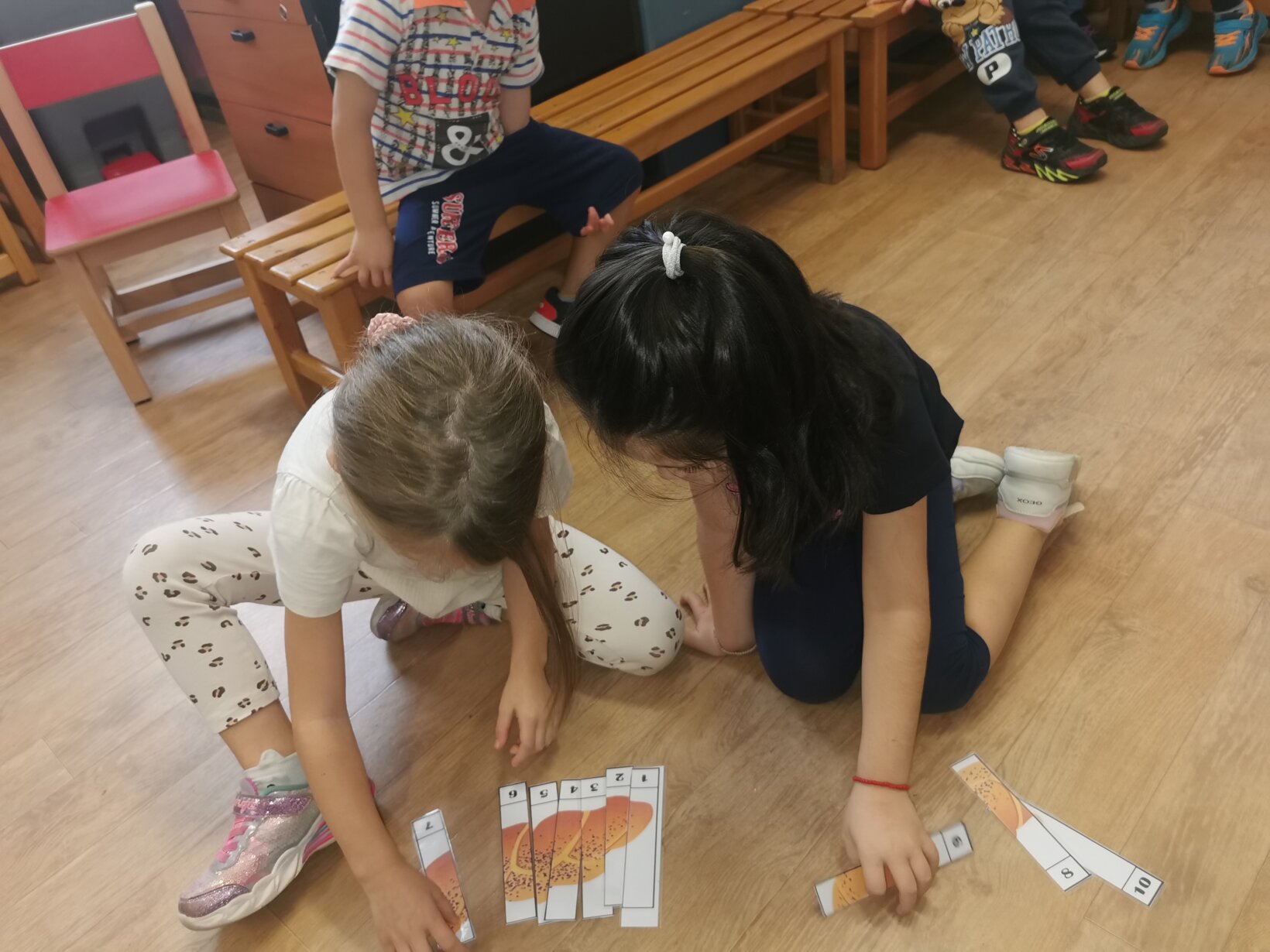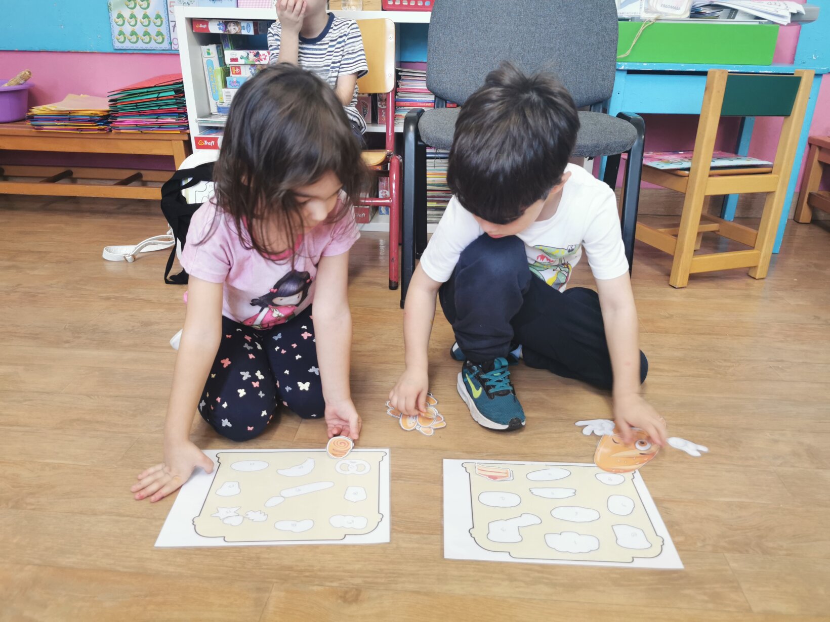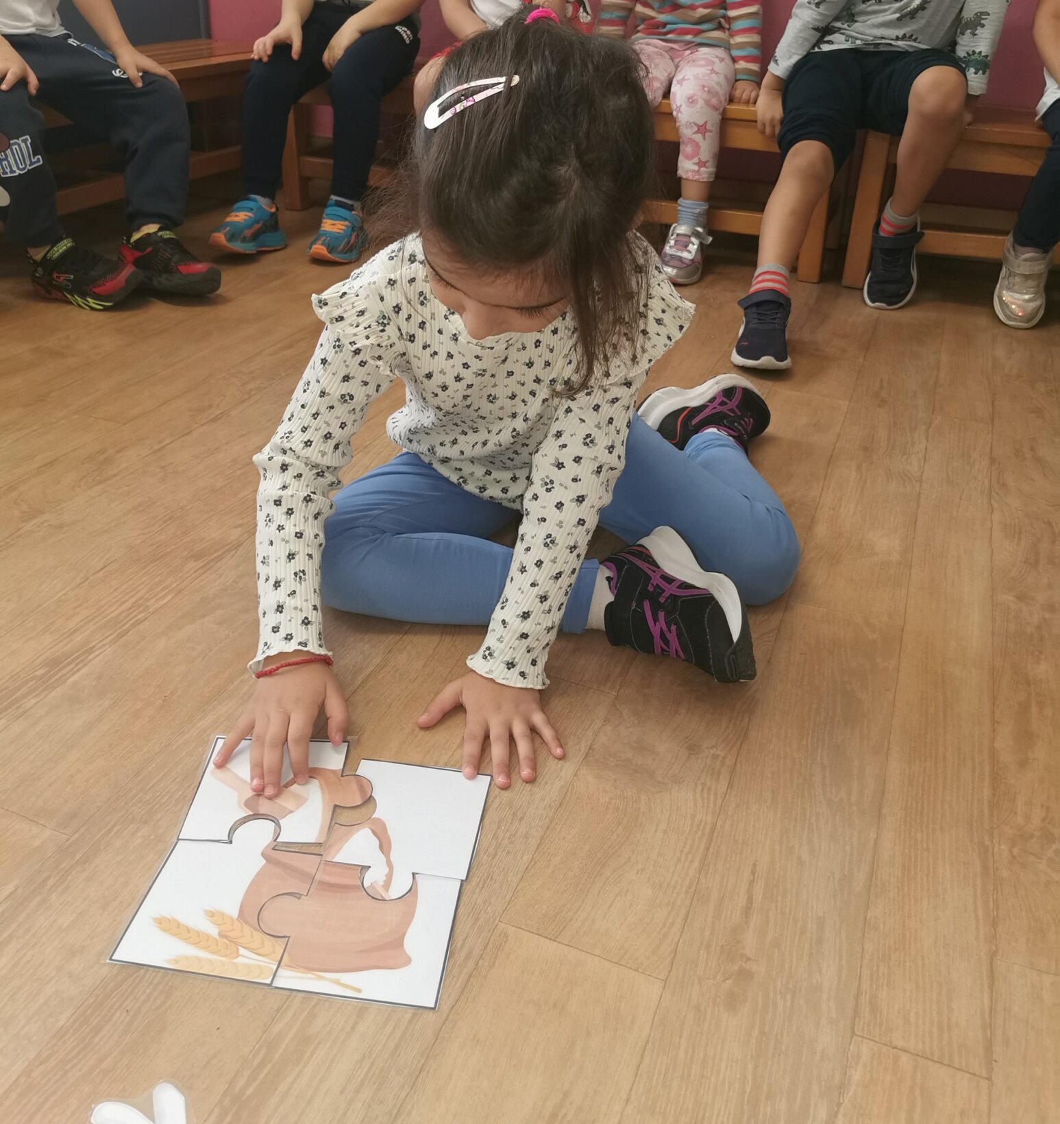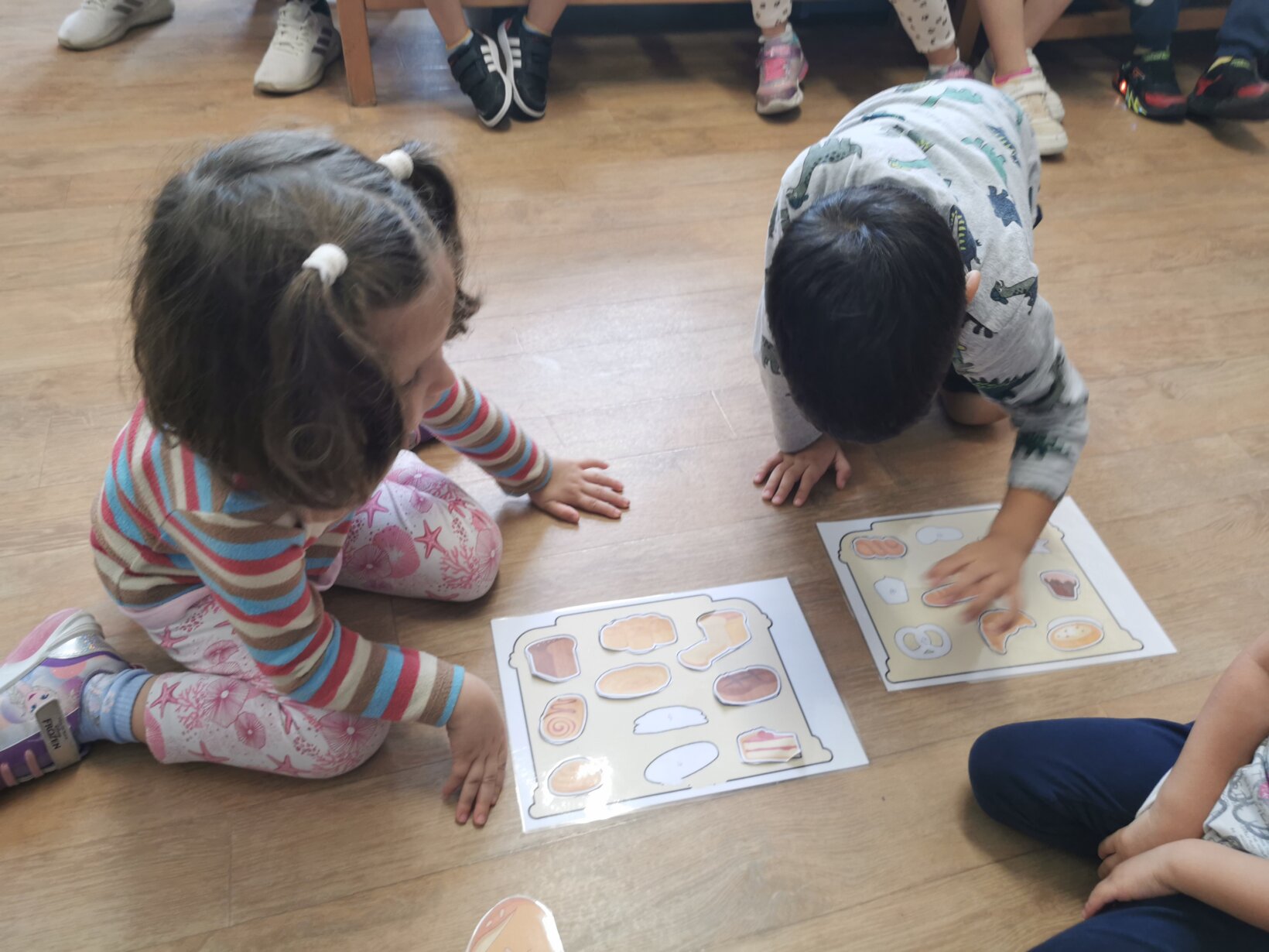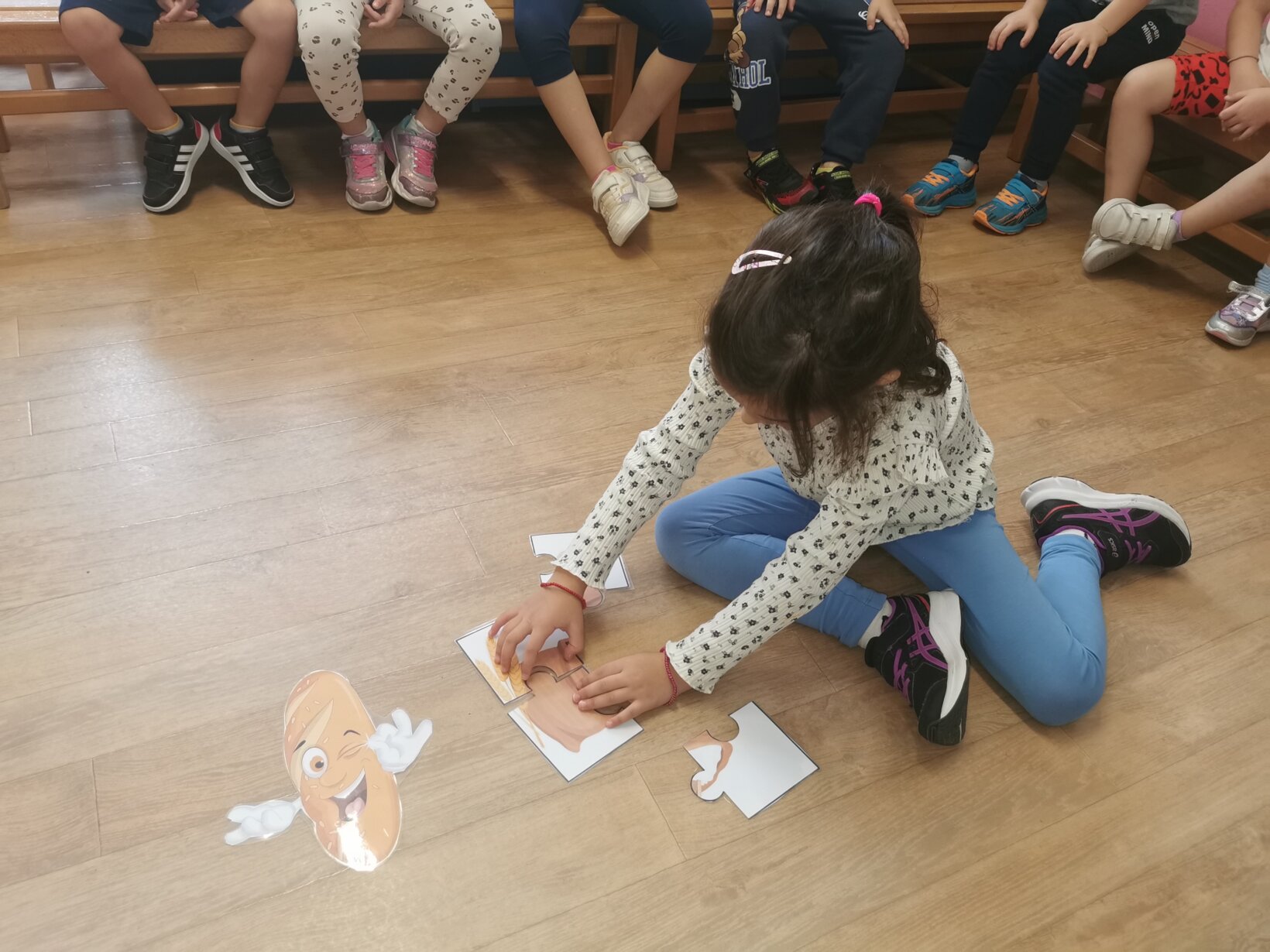 Με αφορμή την εκδρομή που πρόκειται να πραγματοποιήσουμε την Τρίτη 7 Νοεμβρίου 2023 στο Paradise Park, ασχοληθήκαμε με τη διαδικασία παραγωγής ψωμιού. Διαβάσαμε το παραμύθι “το πιο γλυκό ψωμί” και περιγράψαμε αναλυτικά τα στάδια (σιτάρι – θερισμός – αλώνισμα – άλεσμα – ζύμωμα – ψήσιμο). Μιλήσαμε για το αλεύρι ως το κύριο συστατικό για την παρασκευή και άλλων προϊόντων, όπως τσουρέκι, κρουασάν, κουλουράκια, πίτσα κτλ. Πήραμε μια εικόνα για τη μορφή που έχουν τα προϊόντα αυτά μέσα από διάφορα παιχνίδια, όπως π.χ. παζλ, τοποθέτηση προϊόντων στην αντίστοιχη θέση κτλ. Αφού κατανοήσαμε τα παραπάνω, ζωγραφίσαμε, κόψαμε και βάλαμε στη σωστή σειρά τις εικόνες με τα στάδια παραγωγής του ψωμιού.