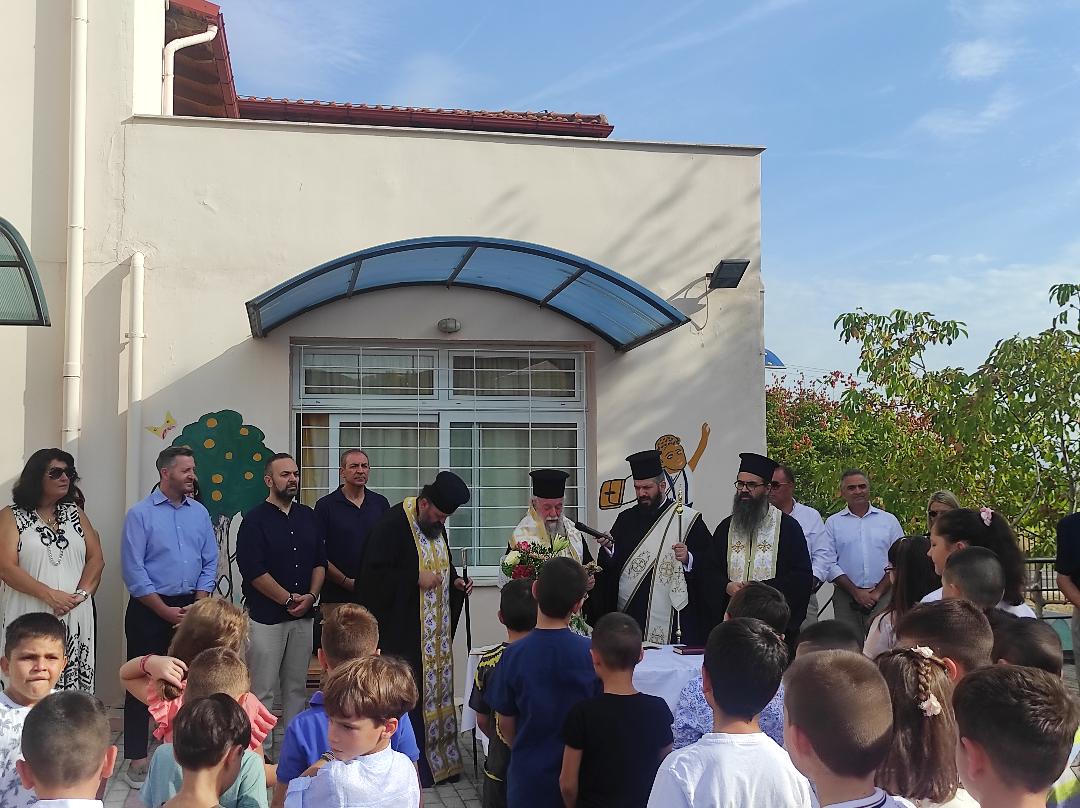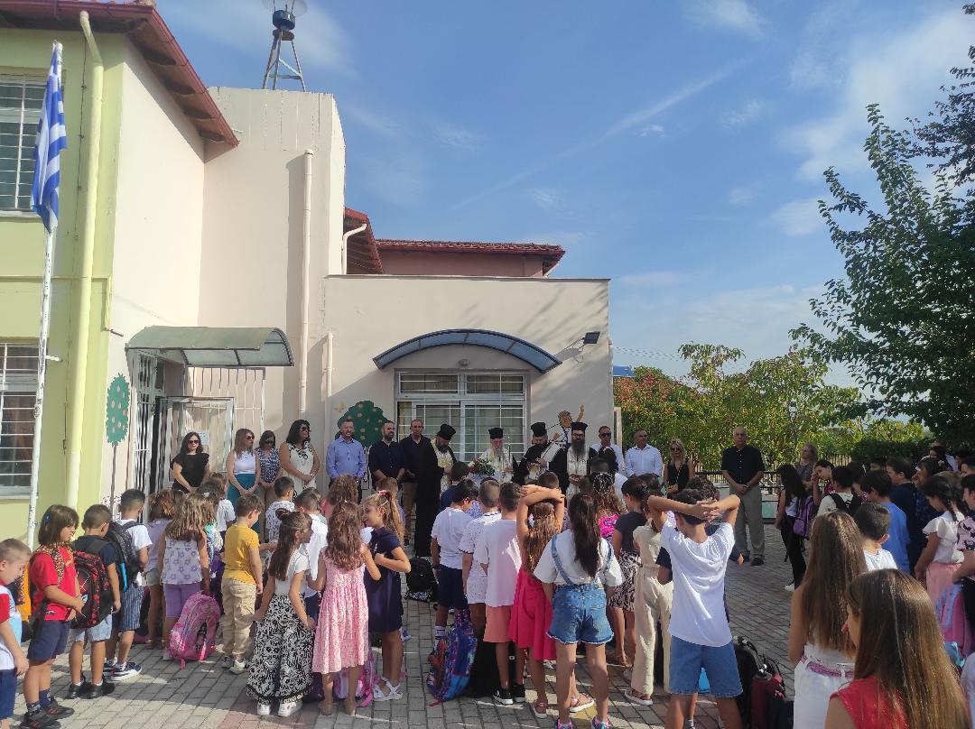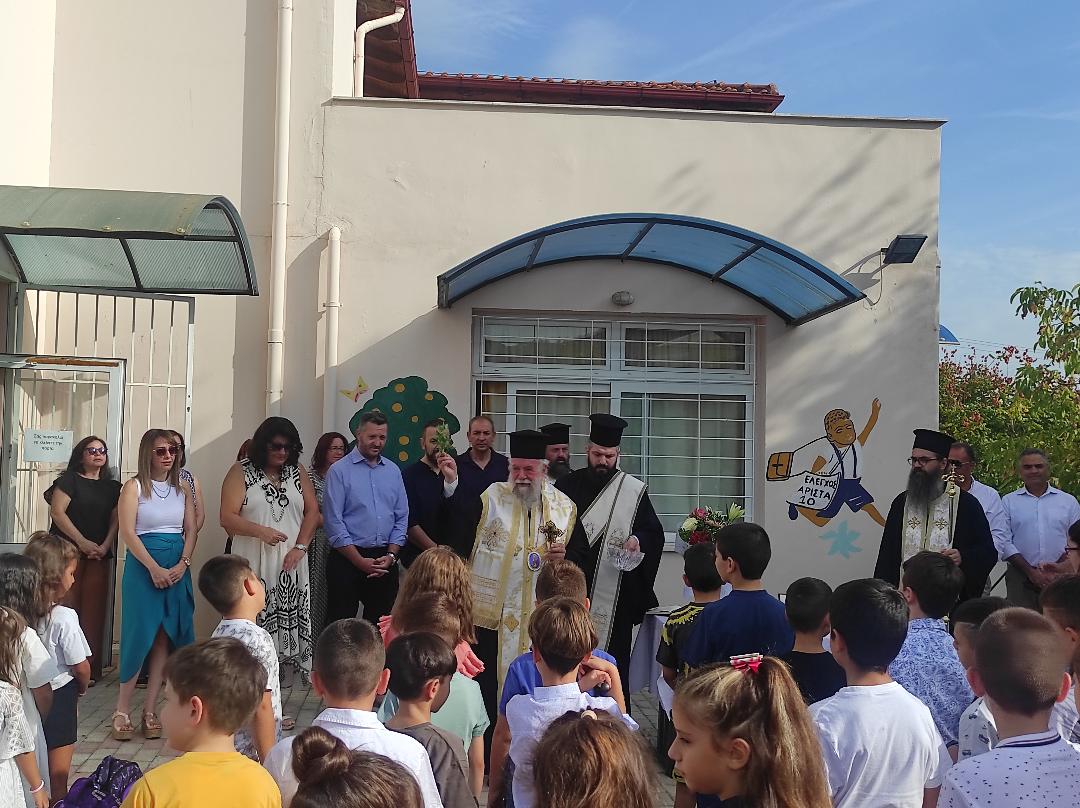 Πραγματοποιήθηκε την Πέμπτη 11 Σεπτεμβρίου ο αγιασμός στο σχολείο μας, ο οποίος σηματοδότησε την έναρξη της νέας σχολικής χρονιάς. Τον Αγιασμό τέλεσε ο Σεβασμιότατος Μητροπολίτης Ελευθερουπόλεως κ. Χρυσόστομος μαζί με τον εφημέριο της ενορίας του σχολείου μας π. Ιωάννη, τον εφημέριο του Αγίου Ελευθερίου π. Παναγιώτη και τον διάκονο π. Αθανάσιο. Η τελετή πραγματοποιήθηκε στην αυλή του σχολείου, παρουσία μαθητών, γονέων και εκπαιδευτικών. Στην τελετή του Αγιασμού, παρευρέθηκε ο Δήμαρχος Παγγαίου κ. Φίλιππος Αναστασιάδης, η Αντιδήμαρχος Παιδείας κ. Ζωή Απαζίδου, ο Γενικός Γραμματέας του Δήμου κ. Γεώργιος Καλλινικίδης και ο Σχολικός Σύμβουλος του σχολείου μας κ. Γιάννης Χατζηκυριάκου. Μετά το τέλος του Αγιασμού ο Σεβασμιότατος ευχήθηκε σε όλους καλή σχολική χρονιά, καλή πρόοδο και έδωσε τις πατρικές του συμβουλές για μια πετυχημένη σχολική χρονιά. Στο τέλος έδωσε σε κάθε μαθητή ως ευλογία και μια εικόνα της Παναγίας. Χαιρετισμούς απηύθυνε και ο Δήμαρχος Παγγαίου και ο Σχολικός μας Σύμβουλος ενώ ο Διευθυντής του σχολείου στον χαιρετισμό του υποδέχθηκε ιδιαίτερα τα πρωτάκια και τους νέους μαθητές του σχολείου που ήρθαν φέτος με μετεγγραφή από άλλα σχολεία. Ήταν μία όμορφη και χαρούμενη αρχή για μια νέα χρονιά γεμάτη ελπίδα και αισιοδοξία. Καλή σχολική χρονιά σε όλους.