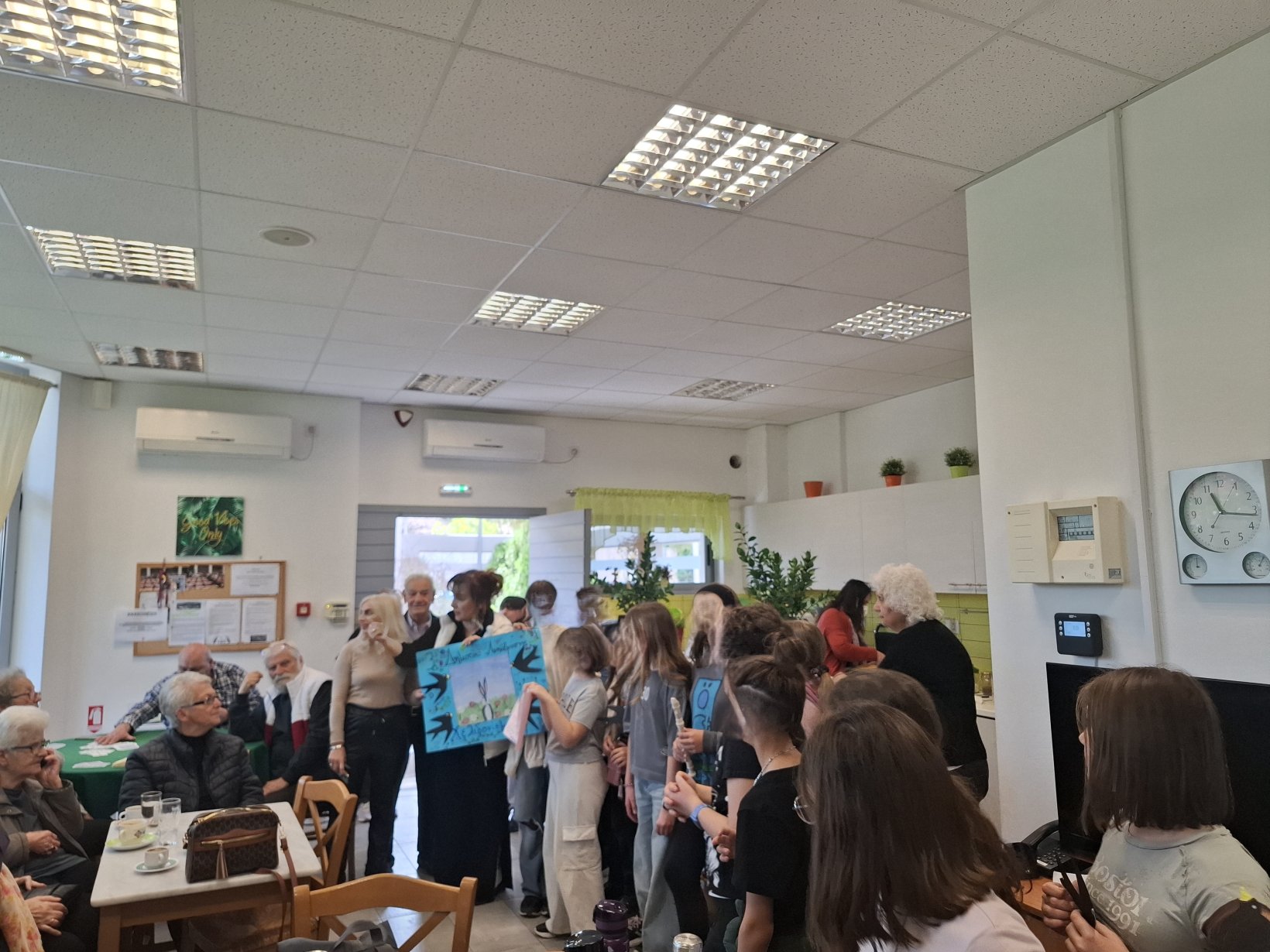 Κατά την επίσκεψή τους οι μαθητές είχαν την ευκαιρία να συνομιλήσουν με τα μέλη του Κ.Α.Π.Η., να τους απαγγείλουν ποιήματα για την Άνοιξη, να τους τραγουδήσουν τα κάλαντα της Άνοιξης – Χελιδονίσματα και στη νοηματική γλώσσα και να ανταλλάξουν έθιμα και αναμνήσεις με τα μέλη του Κ.Α.Π.Η.