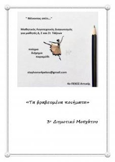 Το σχολείο μας συμμετείχε με μεγάλη επιτυχία στον μαθητικό λογοτεχνικό διαγωνισμό που διοργάνωσε το 4ο ΠΕ.Κ.Ε.Σ. Αττικής , υπό τον γενικό τίτλο «Μένοντας σπίτι …» για τους/τις μαθητές/τριες των μεγαλύτερων τάξεων των σχολείων (Δ, Ε, ΣΤ) των Δημοτικών Σχολείων της Διεύθυνσης Α΄/θμιας Εκπαίδευσης Δ΄ Αθήνας .