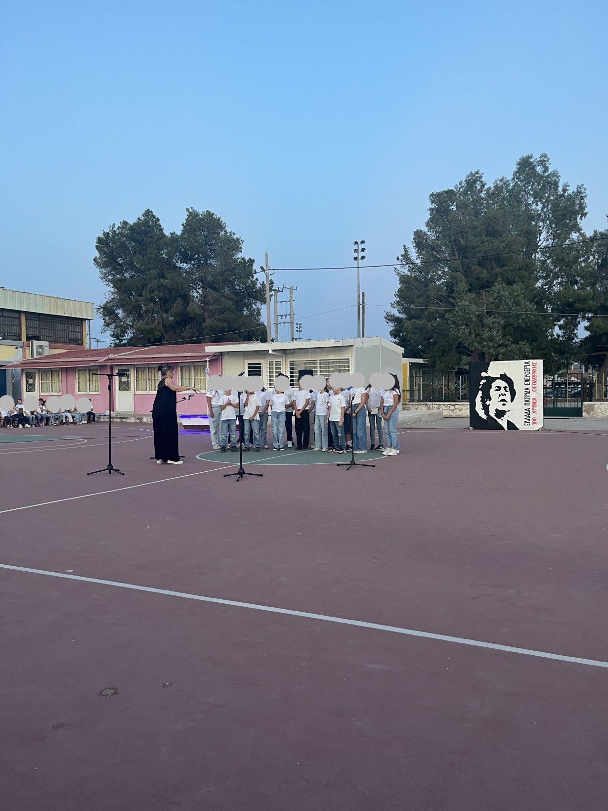 Αφιερωμένη στον Μίκη Θεοδωράκη τον σπουδαίο Έλληνα, τον άνθρωπο που με τη μουσική και τη δράση του σφράγισε την ιστορία της σύγχρονης Ελλάδας, ήταν η γιορτή λήξης του σχολικού έτους 2024-2025 .