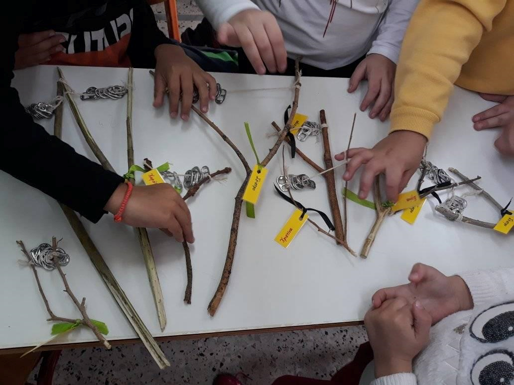 Σείστρα (με «δαχτυλιδάκια» από αλουμινένια κουτάκια αναψυκτικών και κλαδιά δέντρου σε σχήμα Υ – διχάλα. Τα κλαδάκια μπορούμε να πούμε στα παιδιά να τα μαζεύουν μετά από προγραμματισμένο κλάδεμα δέντρων)