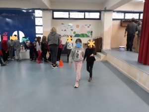 Στο μάθημα της γυμναστικής οι μαθητές των τάξεων, με τη βοήθεια των γυμναστριών τους, προσπάθησαν να μπουν για λίγο στη θέση αυτών των διαφορετικών, αλλά ισάξιων με όλους, ατόμων και να κατανοήσουν τη θέση τους.