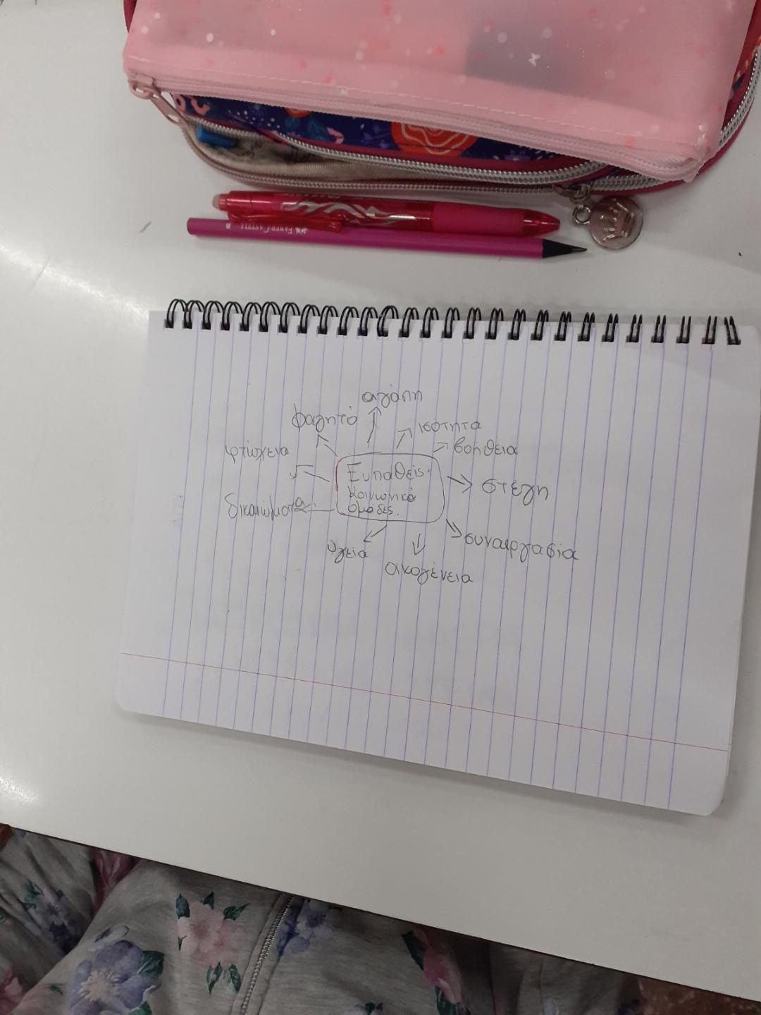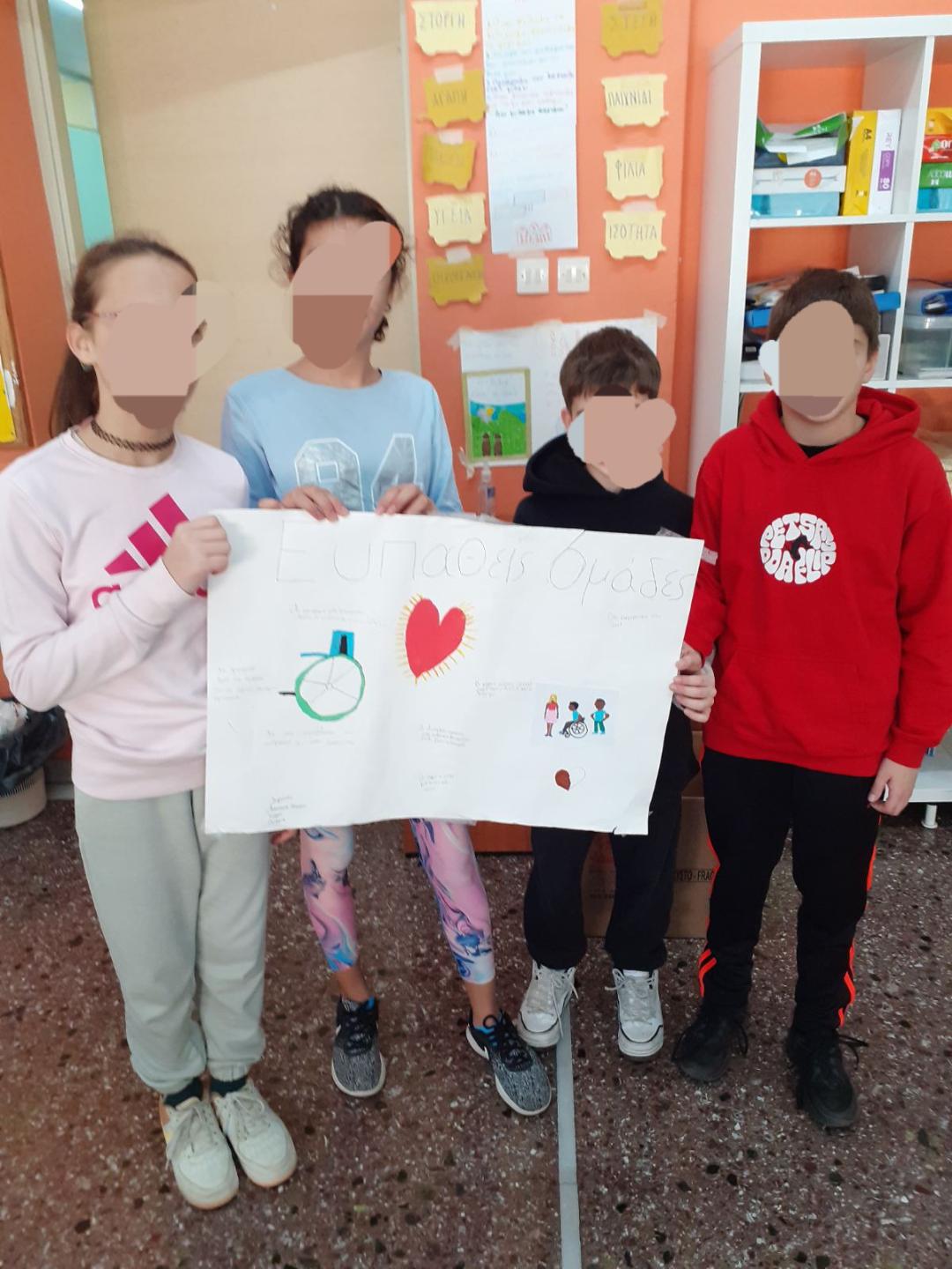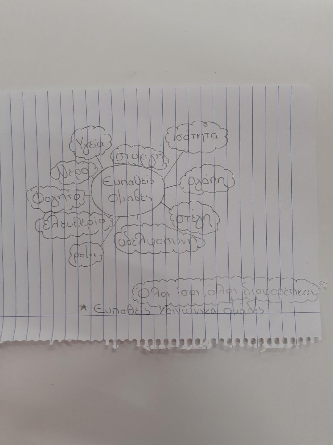 Τέλος, οι μαθητές εγραψαν στο τετράδιό τους 10 λέξεις που τους ερχονται στο μυαλό όταν ακούν τη φράση “ευάλωτες κοινωνικές ομαδες” και 4 μαθητές εφτιαξαν ομαδικά χαρτόνι σχετικό με το θεμα αυτό.