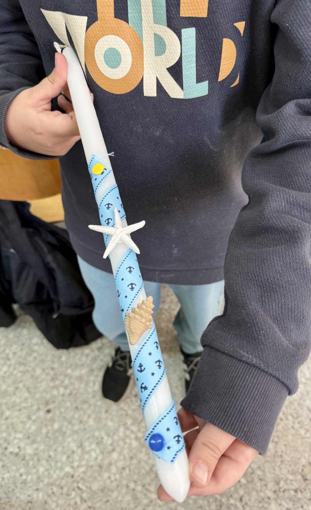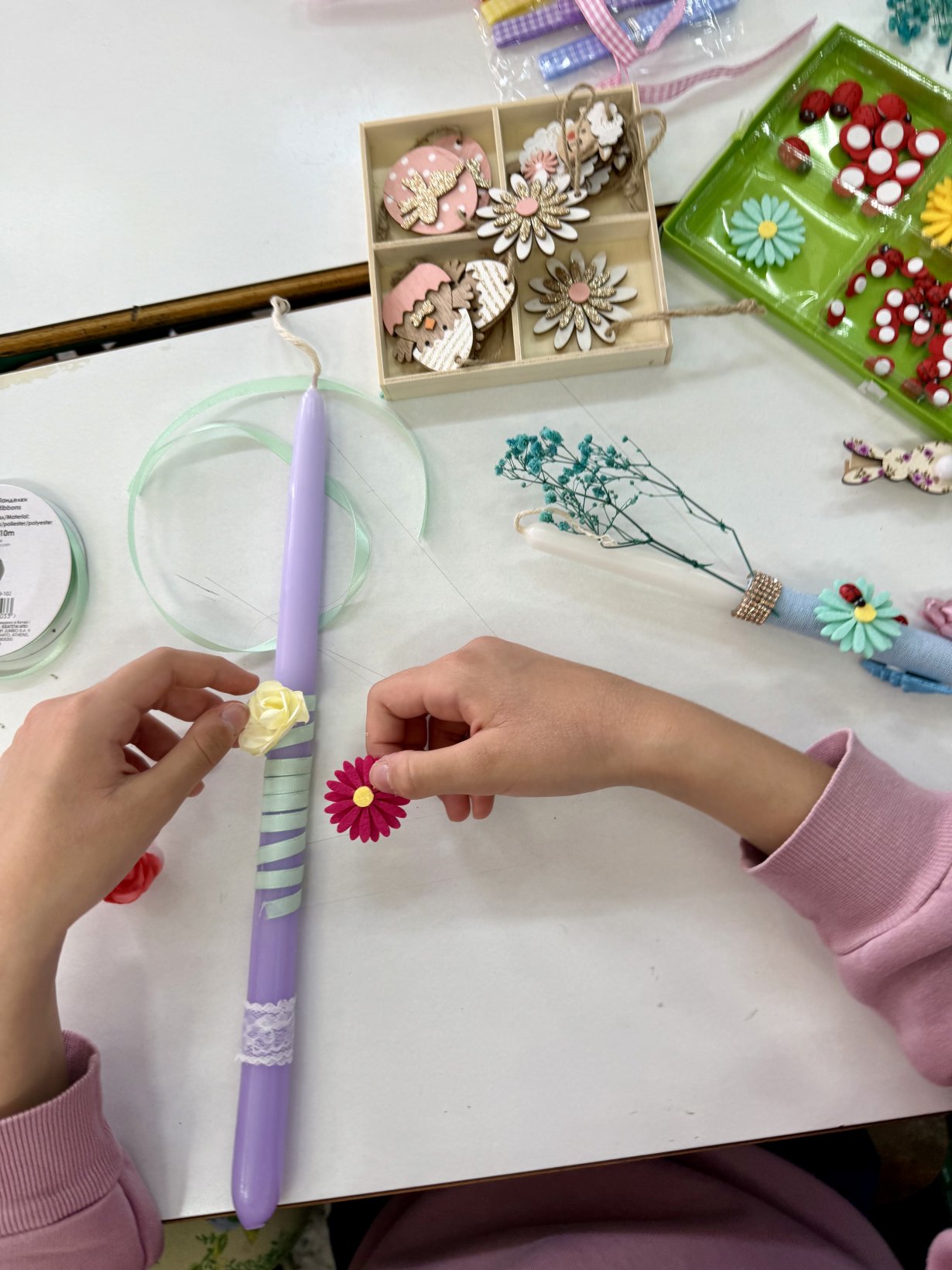 Μια διαδραστική εμπειρία που οι μαθητές/τριες χρησιμοποιούν την φαντασία τους και δημιουργούν μια λαμπάδα όπως θέλουν. Ο κάθε μαθητής/ μαθήτρια διακόσμησε την λαμπάδα του όπως ήθελε με κορδέλες, πασχαλίτσες, λουλουδάκια ,χρωματιστά αυγά και ζωγραφιές.