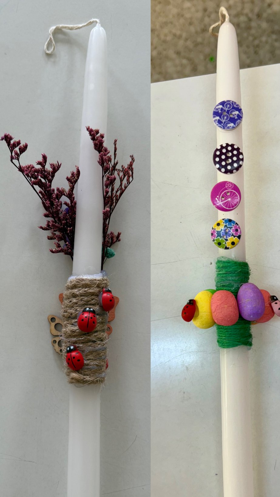 Φτιάξαμε πασχαλινά καλαθάκια που στολίσαμε με σοκολατένια αυγά και φτιάξαμε και πασχαλινές λαμπάδες για να κρατήσουμε στην Ανάσταση. Πλέον είμαστε έτοιμοι για τις διακοπές μας.