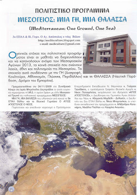 Το περιοδικό ΥΔΡΟ-ΒΙΟΣ σφαίρα (τεύχος 4 Νοέμβριος – Δεκέμβριος 2009) φιλοξενεί τις δράσεις του πολιτιστικού προγράμματος “ΜΕΣΟΓΕΙΟΣ: ΜΙΑ ΓΗ, ΜΙΑ ΘΑΛΑΣΣΑ”.