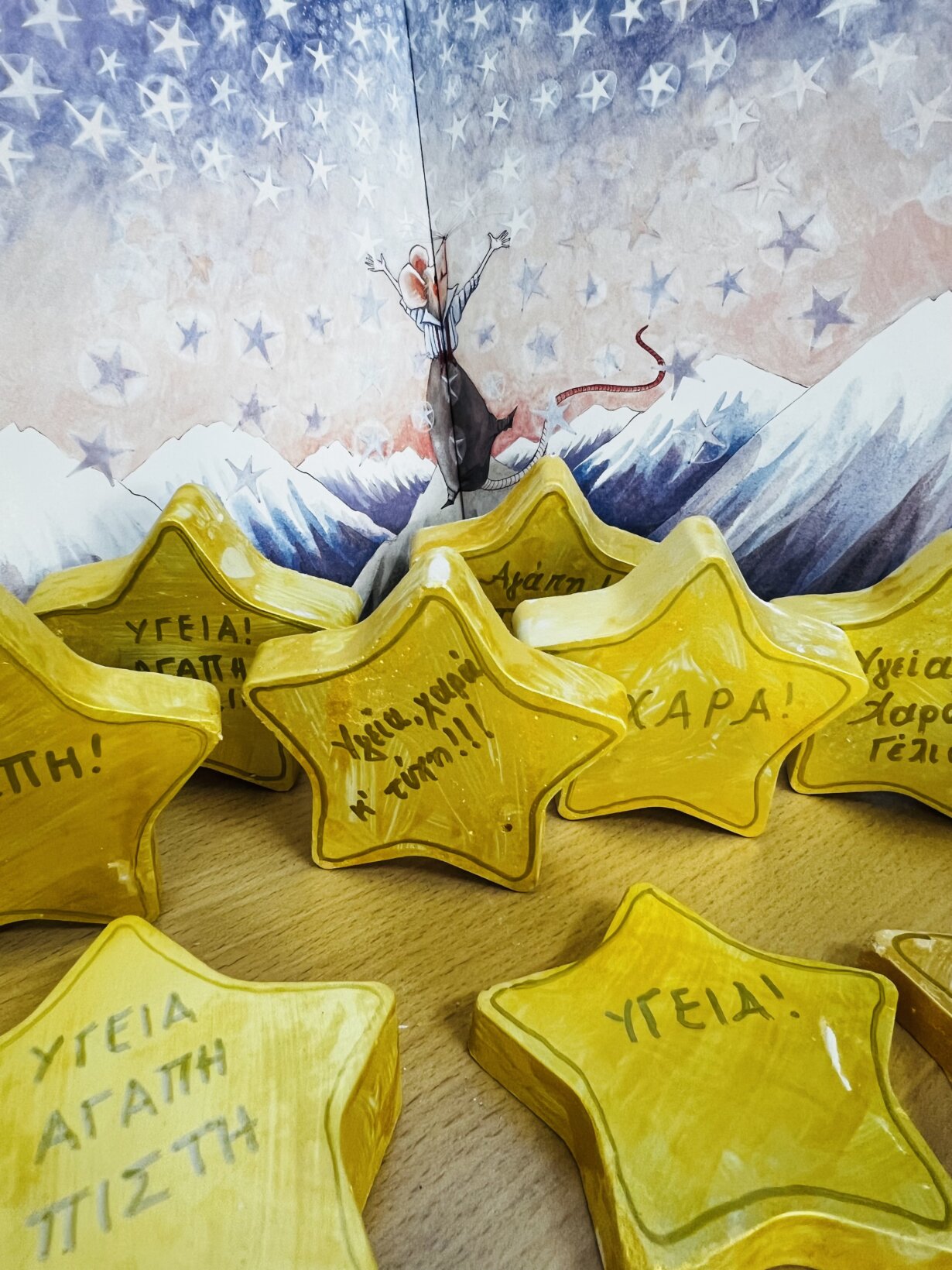 Όταν τα αστεράκια στέγνωσαν, κάθε παιδί μοιράστηκε μαζί μας μια ξεχωριστή ευχή, την οποία γράψαμε συμβολικά πάνω στο αστεράκι του. Οι ευχές τους, γεμάτες αθωότητα και ελπίδα, μας γέμισαν χαμόγελα και συγκίνηση. 💖